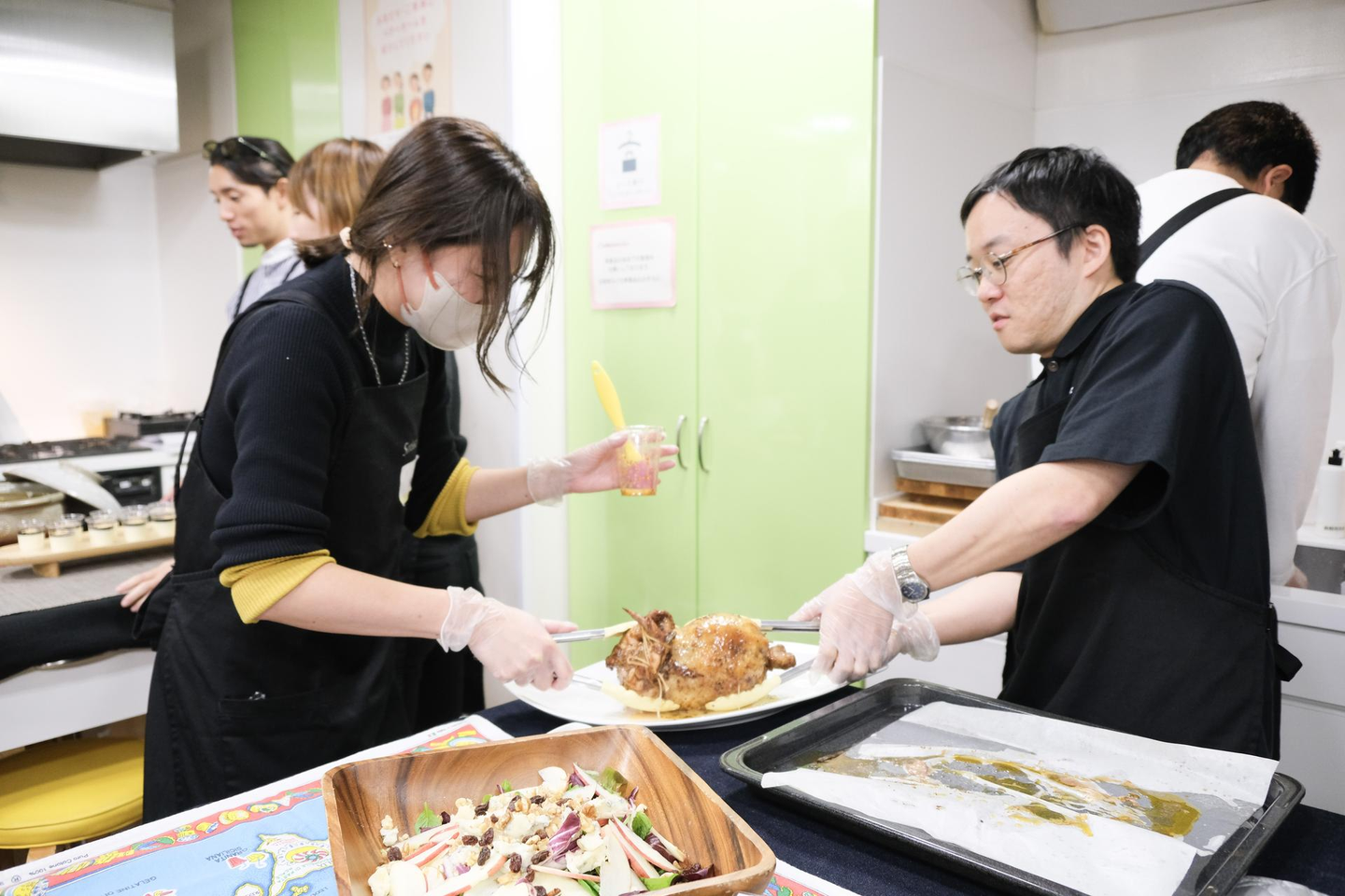 みなさまも普段あまり作られたことがないメニューもあるのではないでしょうか?これらを実際にプロの講師の方々にレクチャーいただき、チーム内で分担してプロの味を再現しました!
