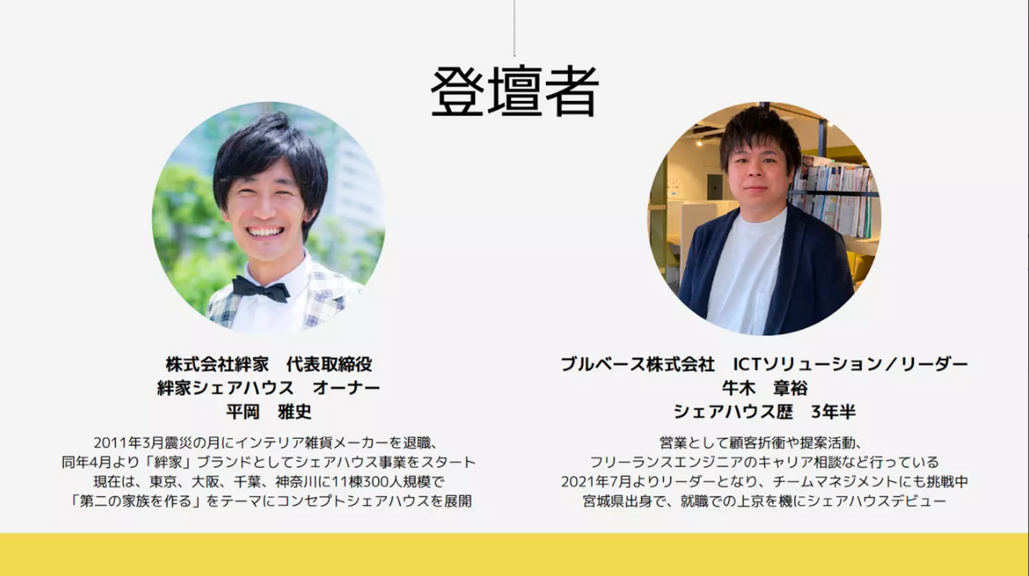 弊社人事採用マネージャの前川、シェアハウスに住みながら営業として活躍する牛木、絆人の平岡様の3人に、昨今注目されているシェアハウスにエンジニアが住むメリットを徹底解説していただきます!