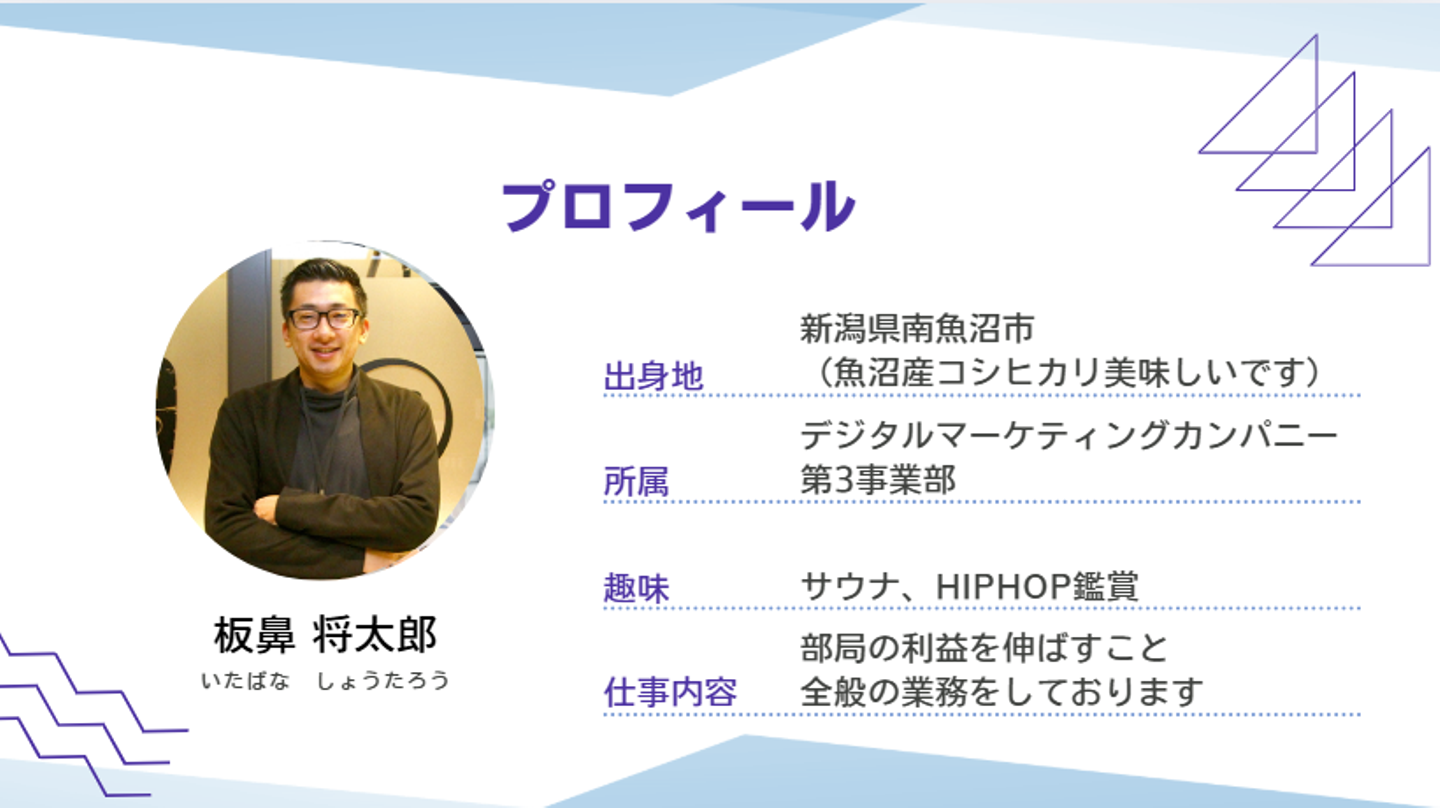 私がバレットグループを選んだ理由は、自分のスキルを高めたいと思ったからです。面接で板鼻さんの人柄に惹かれ、この方と一緒なら大きなことができると感じました。