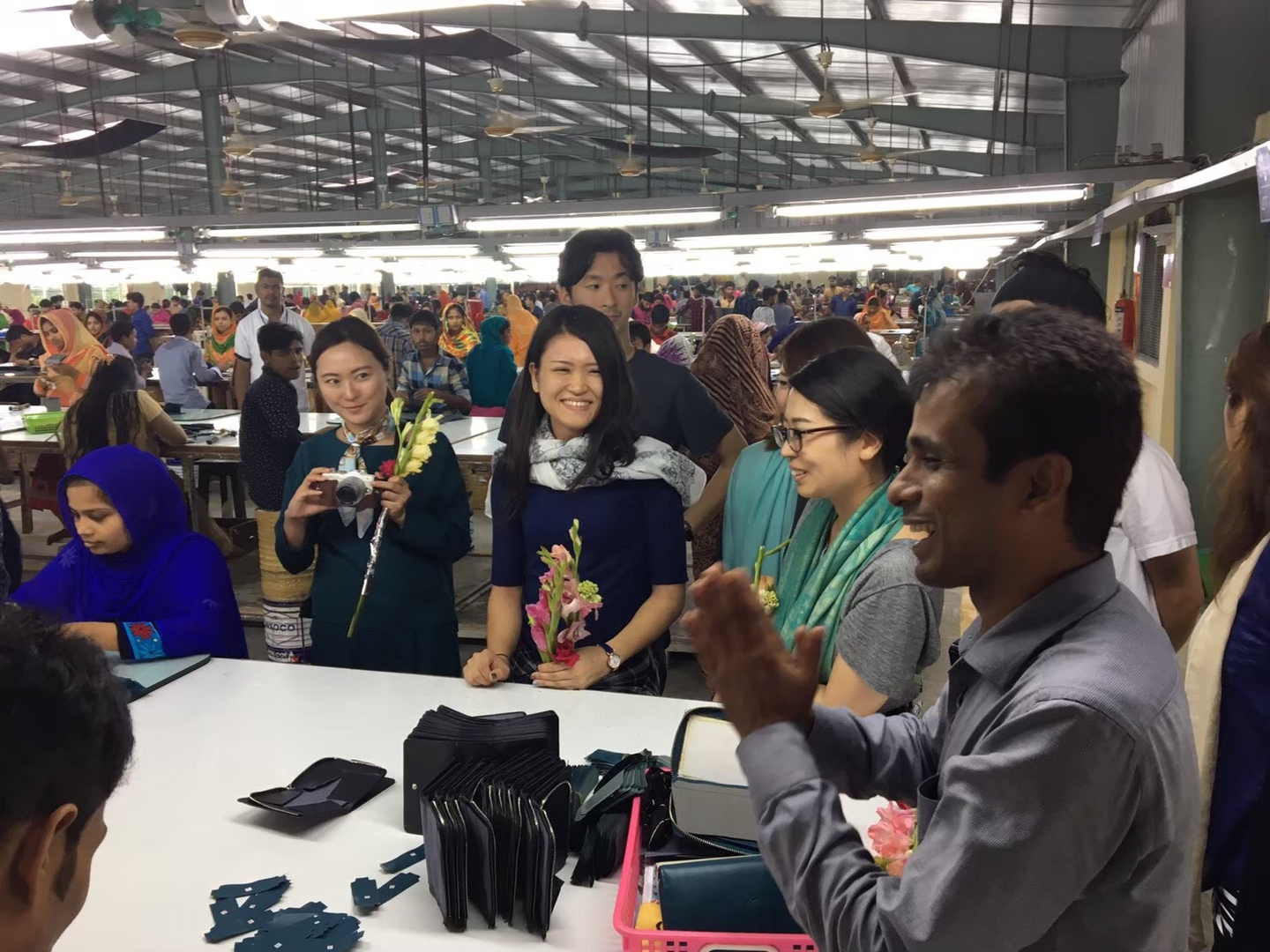 彼女が大きく変わったのは、“バングラデシュ渡航”がきっかけです。育児中ということもあって、それまでバングラデシュへの出張に参加できなかったんですが、2018年に初めて一緒に行けることになったんですよね。みんなより一日短いスケジュールだったのですが、心から楽しみにしていて。ずっと現地とやりとりはしていましたが、ようやく行ける!と張り切って向かっていました。そして現地に到着して、歓迎してくれた工場メンバーの姿を見るなり、大粒の涙を流していて…。その時きっと「今までの自分の仕事がここに繋がっているんだ」と肌で感じられたんだと思います。