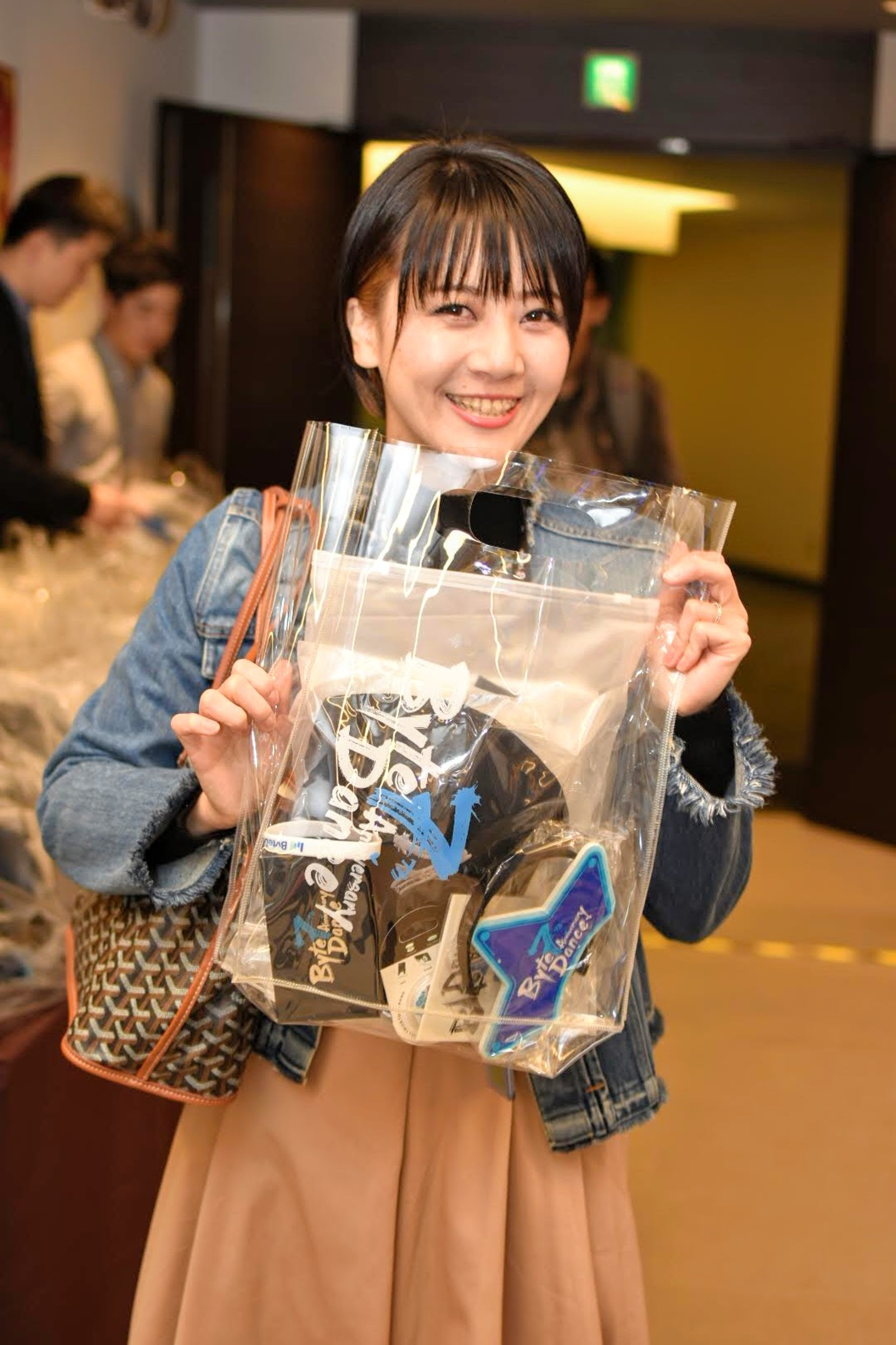 Tシャツ、帽子、記念バッジなど、たくさん入っていて、みなさんとても満足な様子。