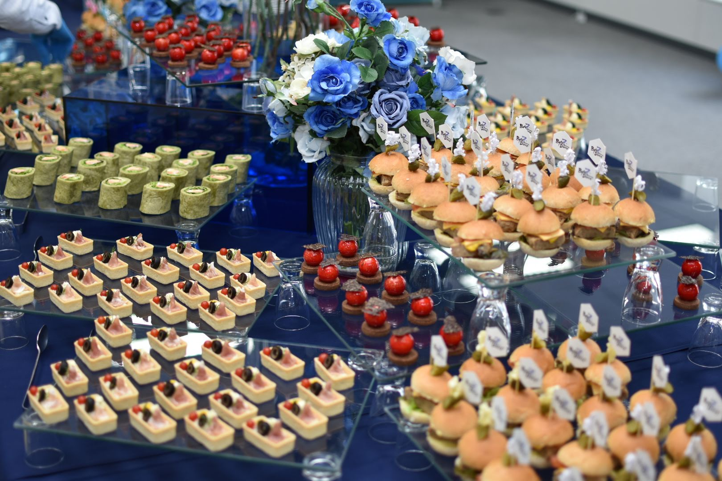 セレモニーの会場となった大会議室にはセレモニーフードで埋め尽くされています。ミニハンバーガーにはByteDanceの旗がついていてとてもおしゃれですね!