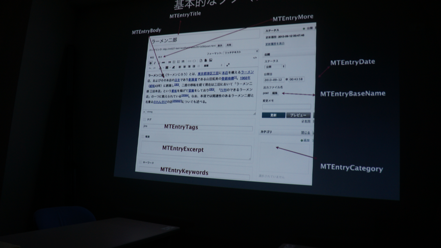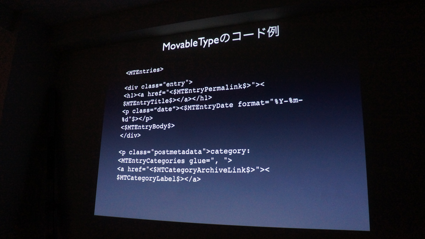発表者からは、最近やったMovableTypeの実績で工夫したところについて教えてもらいました。