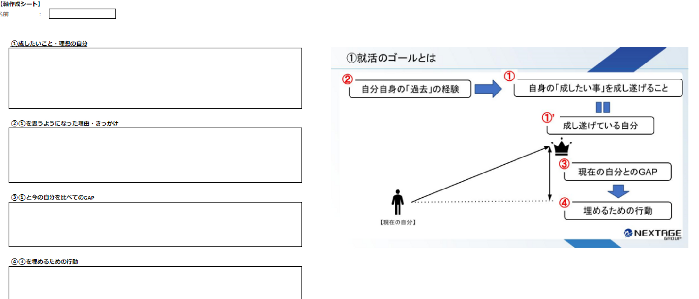 ちなみに面談時に使っていたネクステージオリジナルの軸作成シートはこんな感じです↓↓