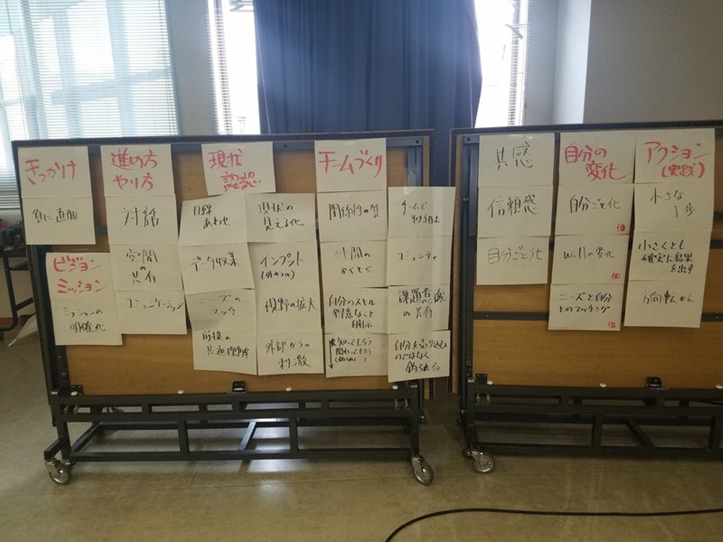 (島根大学の「地域・教育コーディネータ講座」の講義の中で参加者のみんなで「これから大事にしたいこと」を書いた紙。)