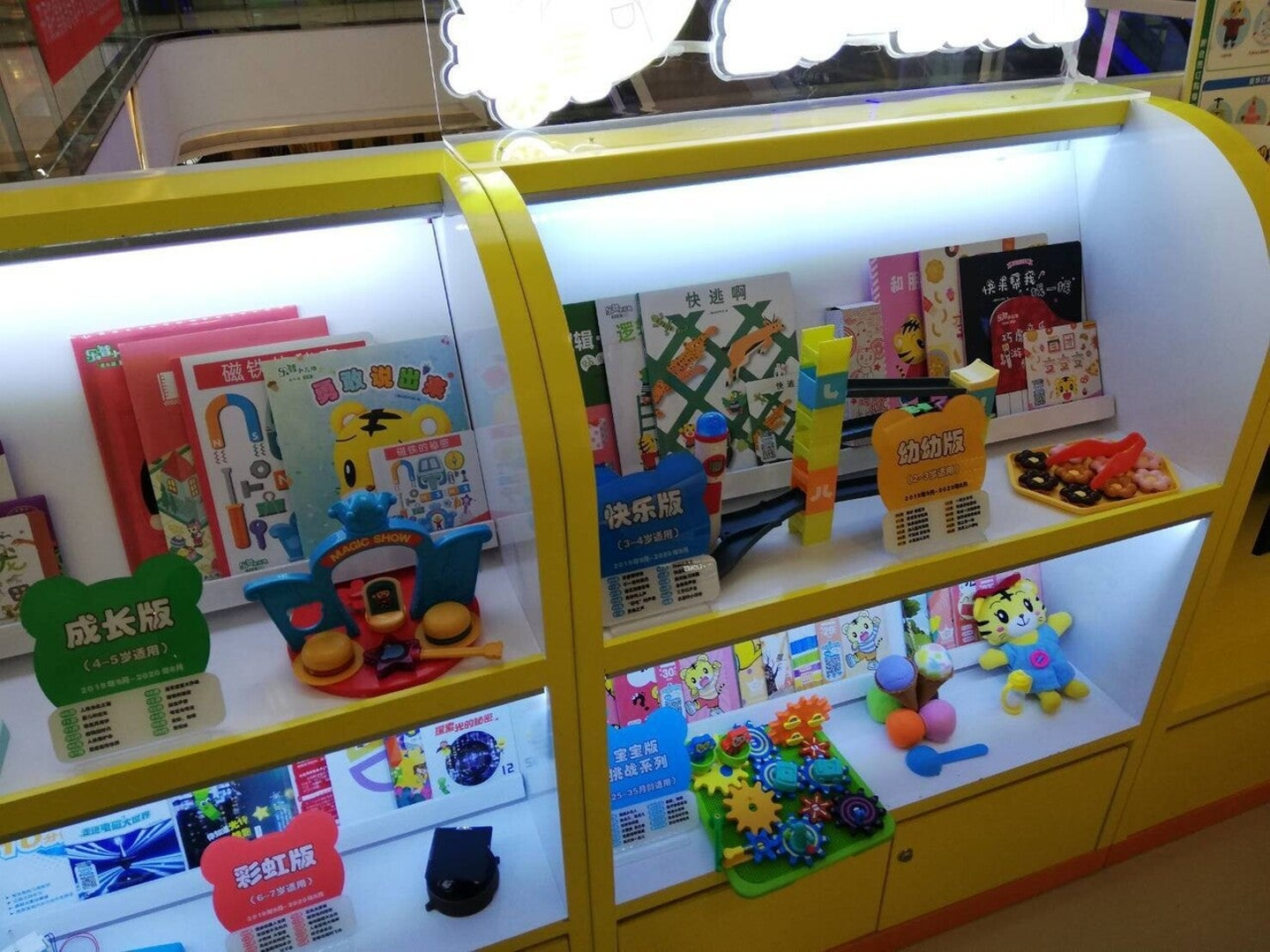(中国でマーケティング担当として販売していた教材の写真《中国の店舗でのディスプレイの様子》。)