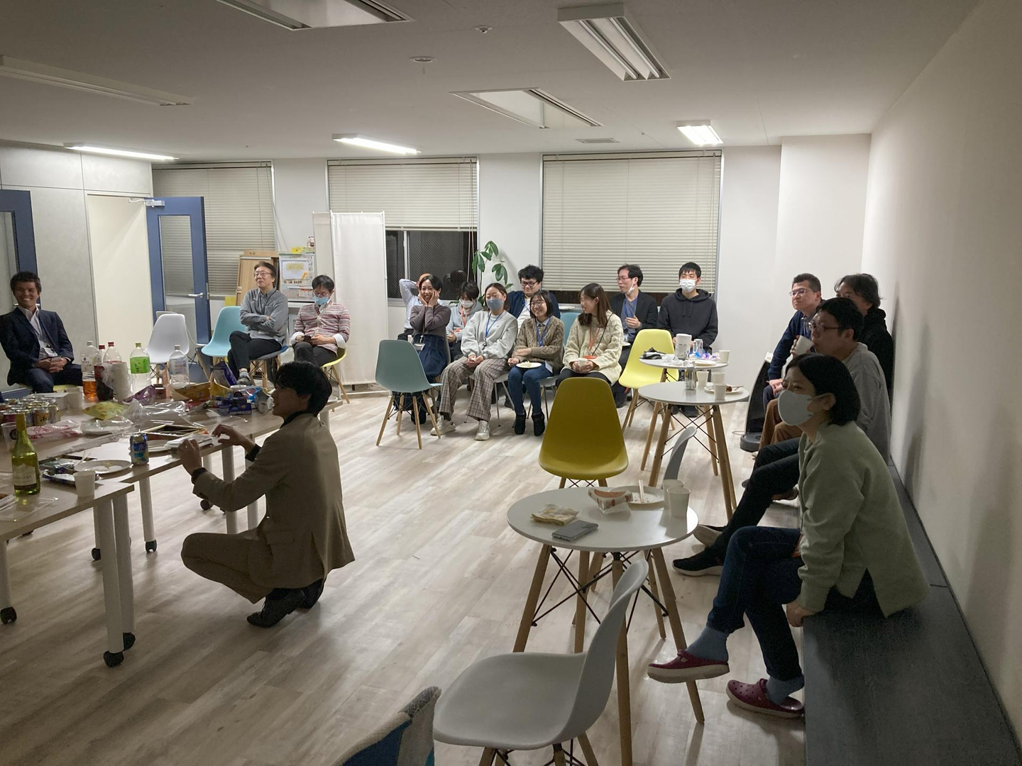 ※ プロジェクターに写した東京オフィス側のみなさんを見ているので薄暗いです(笑)