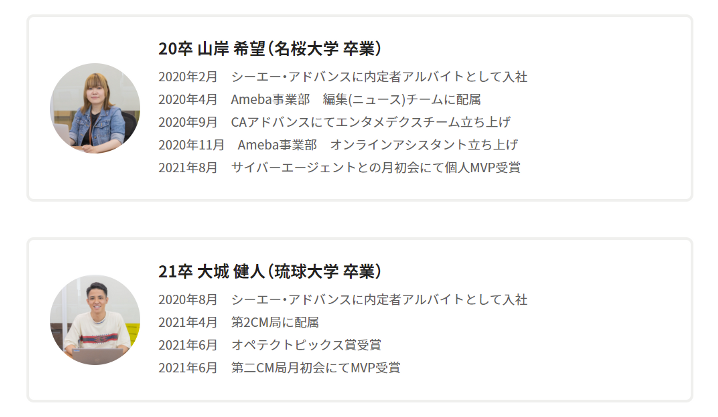 当時シーエー・アドバンスで、新卒向けのインターンを二つ(①頂インターンシップ/②CAMP~CA ADVANCE MEET UP~)募集していて、私は友達と②CAMPにエントリーしたのですが、そこの事前選考で落ちてしまったんです…(笑)