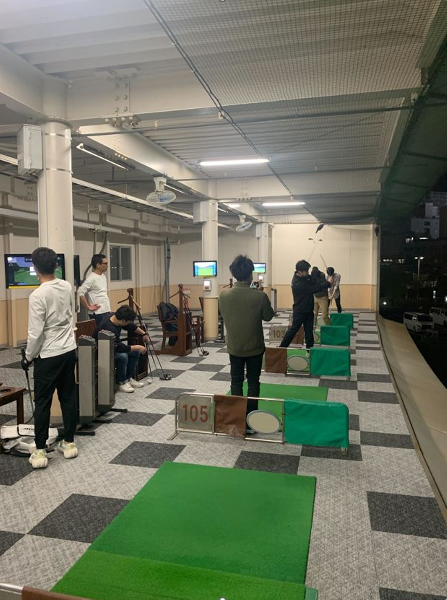 クラブ活動には代表の岩井が参加することも!こちらはゴルフ部の活動風景です。ゴルフ初心者の学生インターン生も参加し、経験者からレクチャーを受けています。