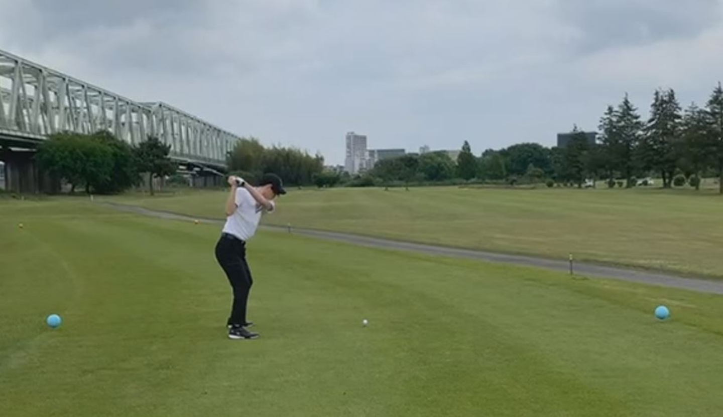 打ちっぱなしでの練習以外にも、コースでのラウンドにもチャレンジ!画像は初ラウンドのインターン生です。