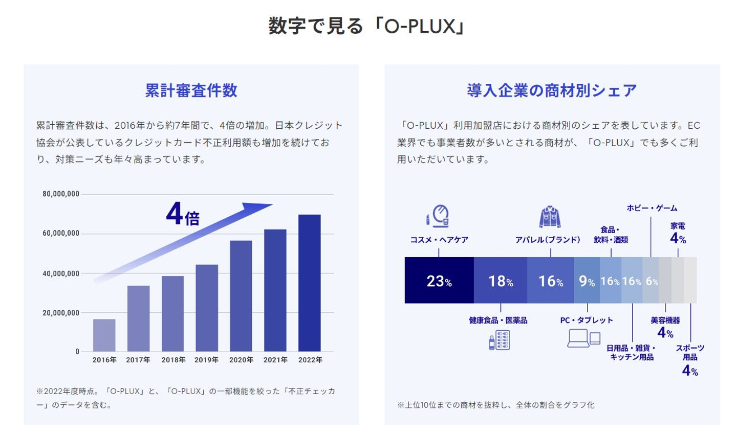 そして最後にかっこの主力サービスである不正注文検知サービス「O-PLUX」に関するデータです。