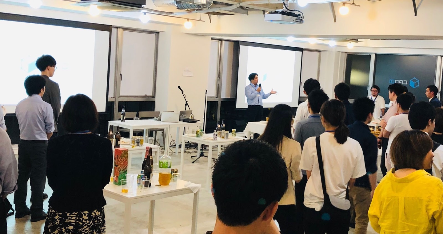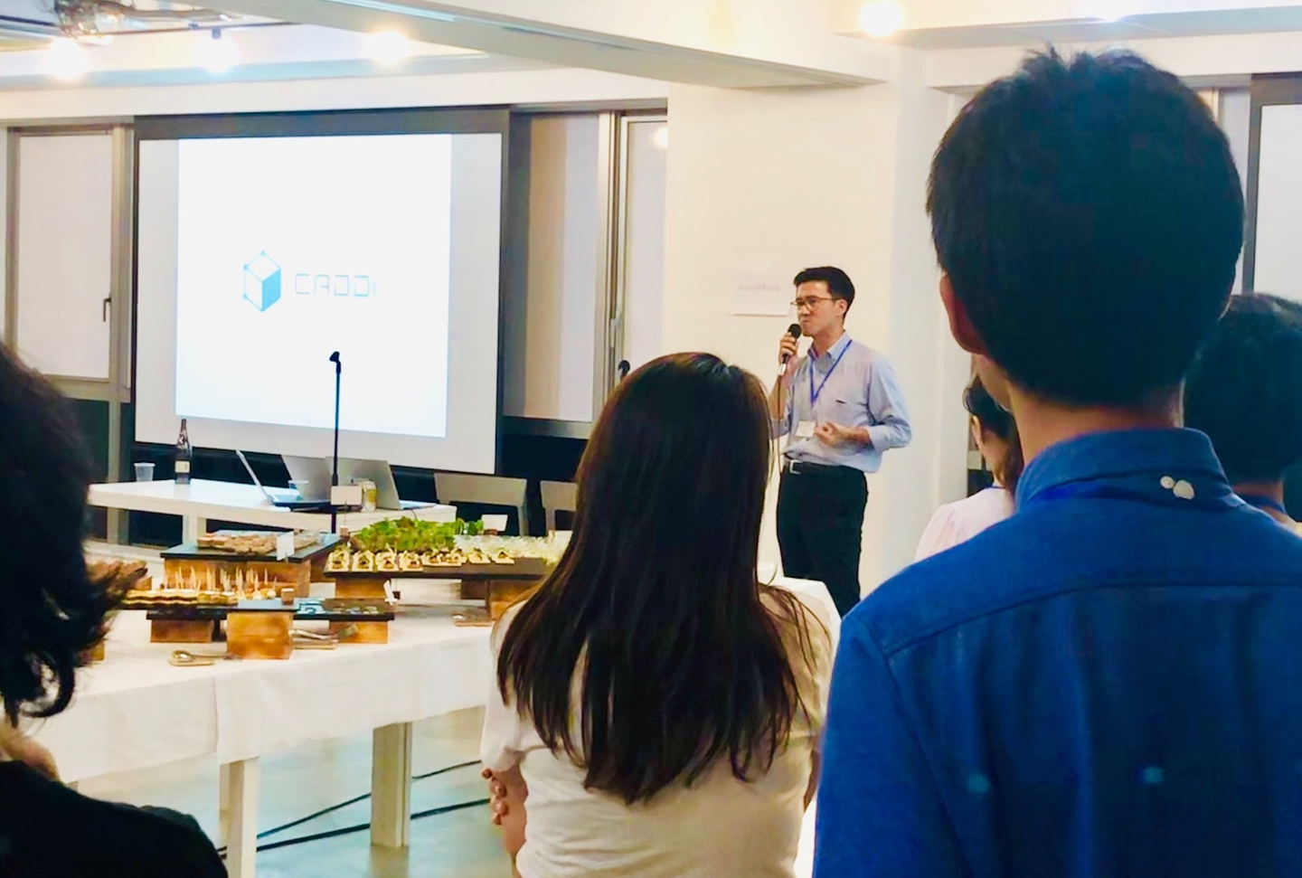 パーティーが徐々に盛り上がる中、弊社CEOの加藤がこれまでのキャディの歴史や、移転の目的、そしてキャディの事業概要と中長期戦略の発表を行いました。