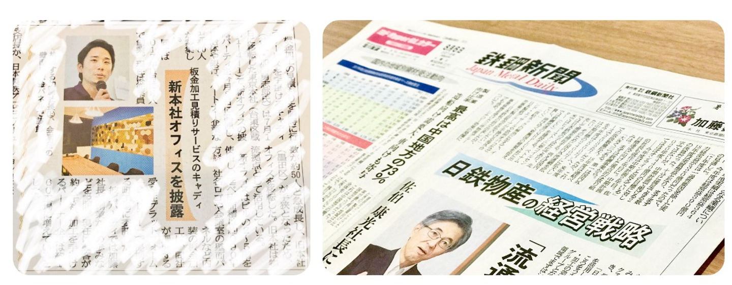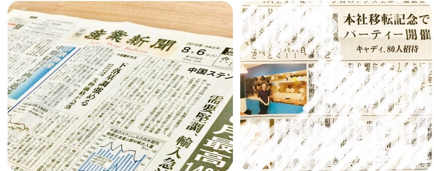 8月6日火曜日には、「産業新聞」(3面)、「鉄鋼新聞」(2面) に移転パーティーについて掲載いただきました^^