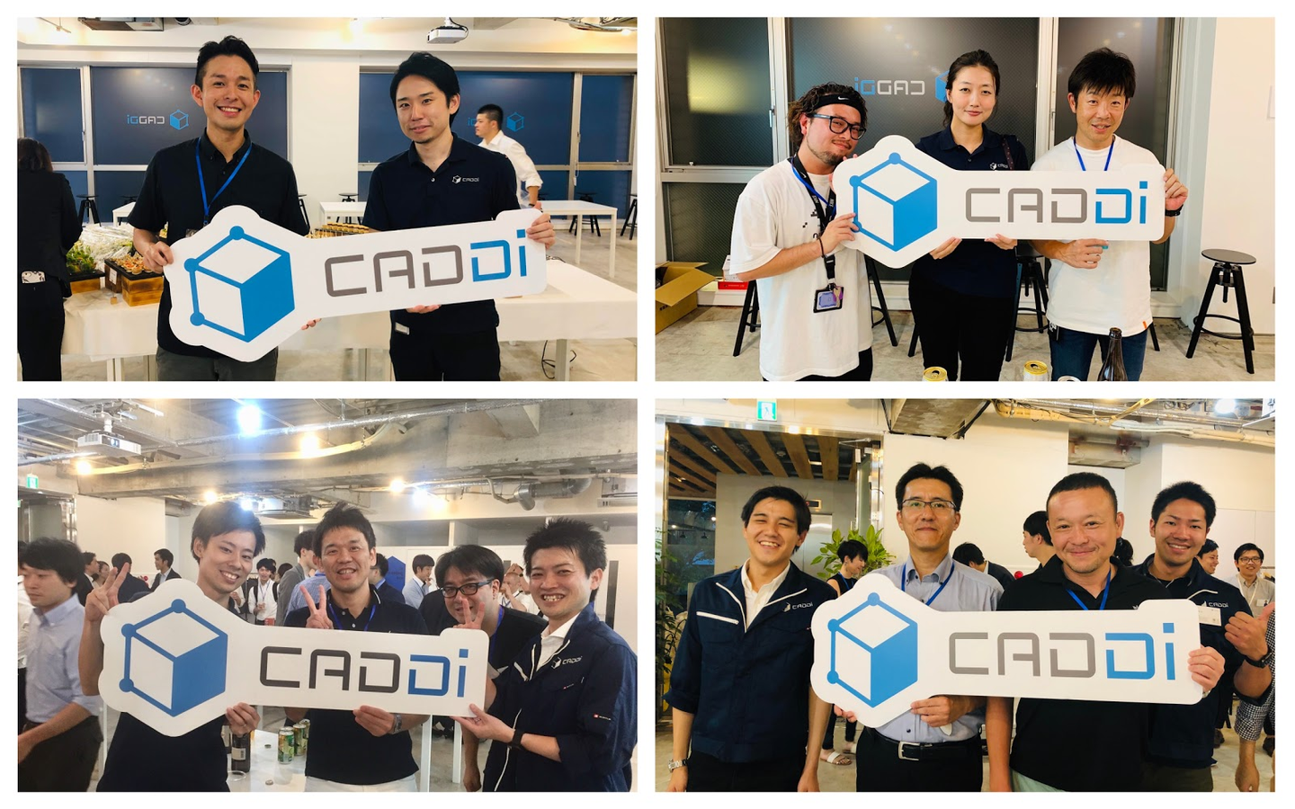 その後しばしの歓談へ。歓談時にはキャディロゴと一緒にメンバーとや来賓の方々とで記念撮影も行われました! #caddi移転party