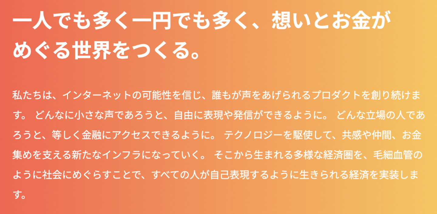 CAMPFIREはクラウドファンディングの文化を広めることに貢献してきましたが、未だにチャレンジしたいことがあっても資金面を主な理由にできない人たちがたくさんいます。