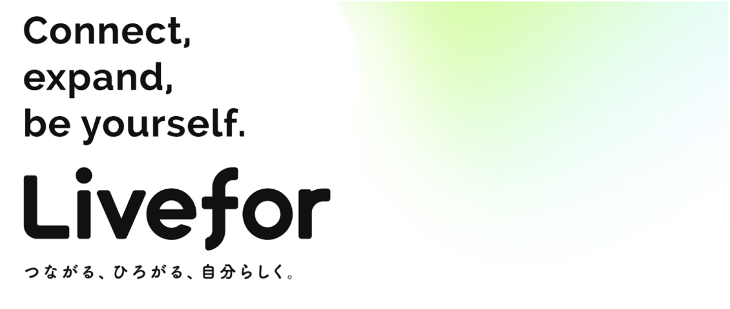Livefor株式会社 新たなテクノロジーを活用し多様な背景や想いを尊重しあい誰もが自分らしく自由にいきられるより多くの協創が生まれる場を作ります。