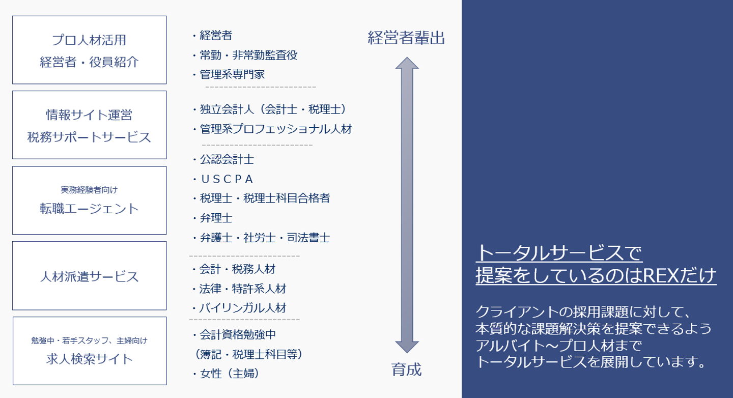フルラインナップでのサービス提供を実現しているのはREXだけ。