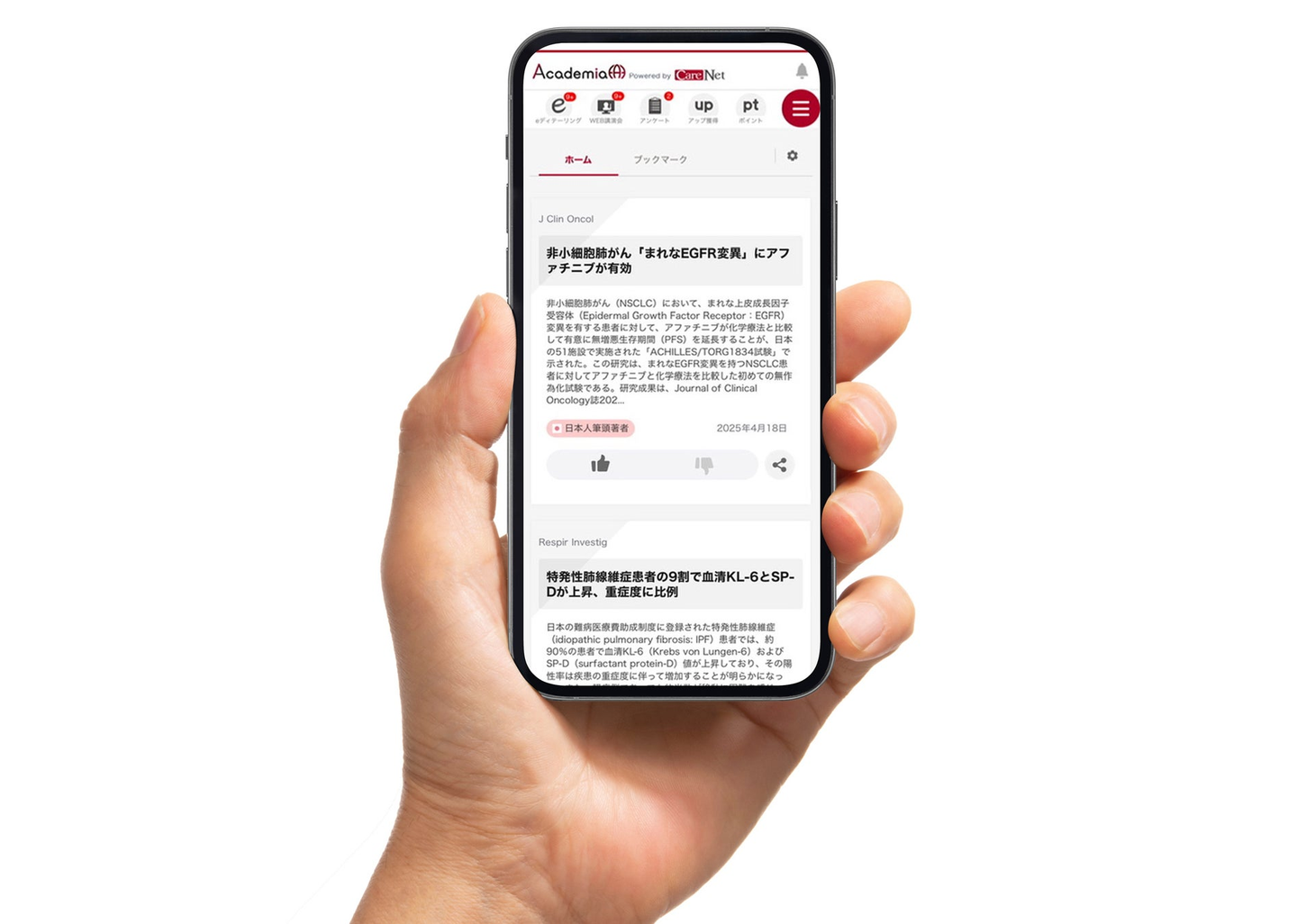 今回当社がリリースした『CareNet Academia(ケアネット・アカデミア)』は、AI技術を用いて、医師一人ひとりの専門性に合わせて、膨大な論文の中から「今、読むべき情報」を選定・要約し、プッシュ型で届けるサービスで、すでに多くの医師から好評いただいています。