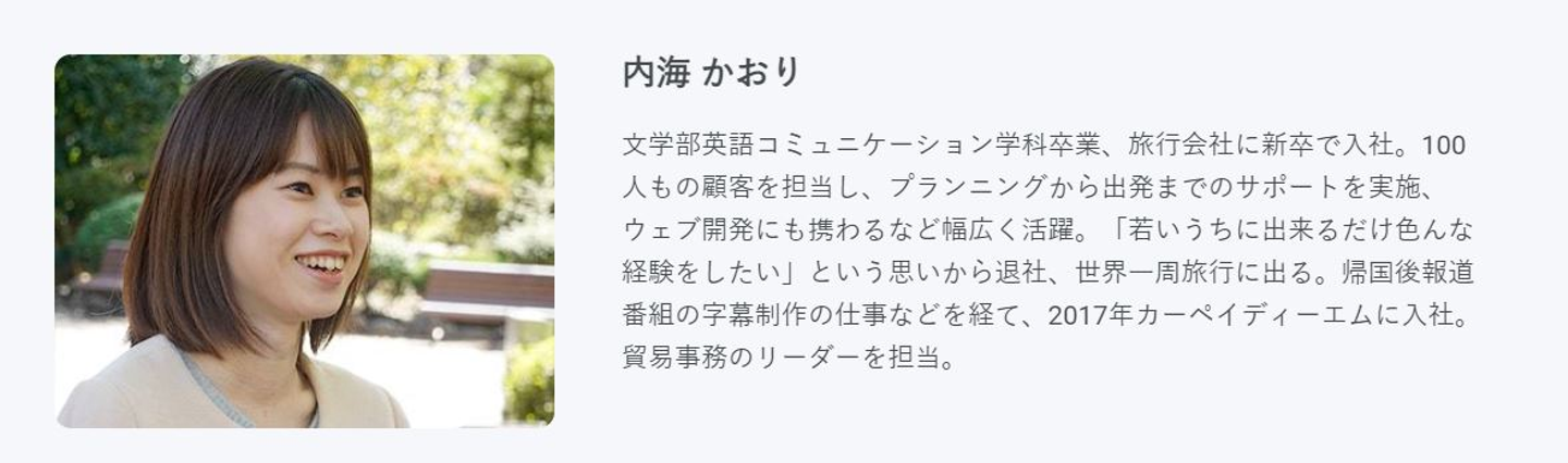 「ワーキングホリデーの経験や英語が活かせる、グローバルな環境が1番の決め手。年齢不問でキャリアアップできるのも大きな魅力」