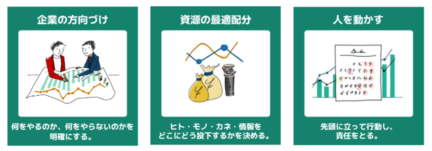 では、中小企業の社長は本来どんな仕事をするべきなのでしょうか? キャシュモは以下3つとしています!