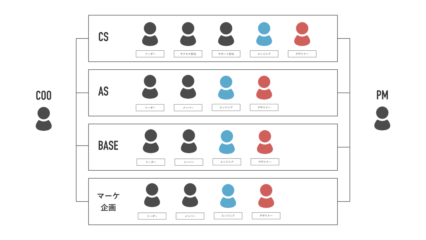 の4つに別れてて、それらをCOOとPMの2方向からジャッジとPDCAを回す。みたいな感じです。