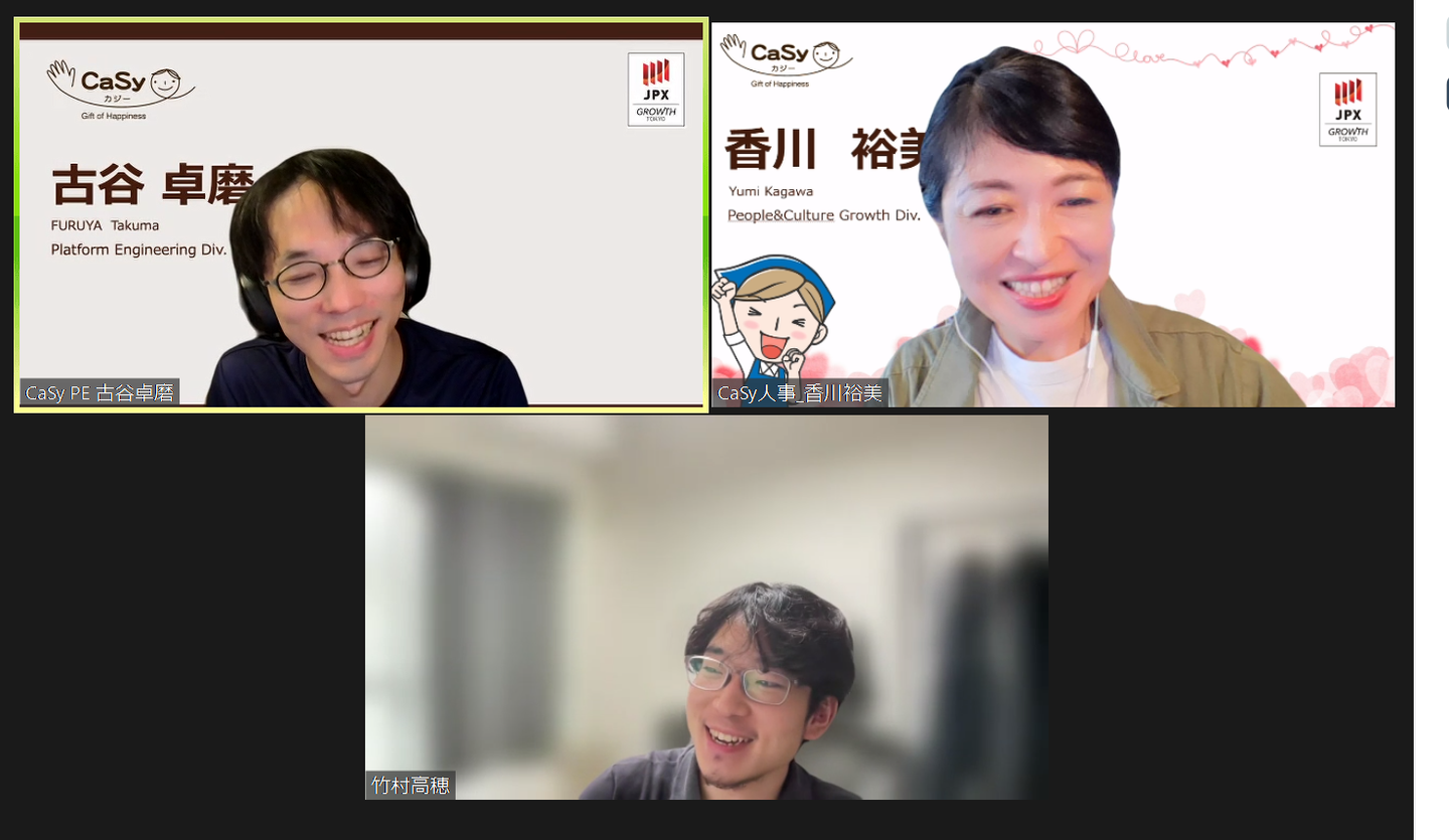 彼らが入社するのは来年4月。そのため現在は内定者と会社とをつなぐ橋渡し役として、毎月実施するオンラインミーティング「Monthly meet UP」を実施したり、CaSyの取り組みを伝えるメールマガジン「CaSy’s note」の発行を手掛けたりしています。
