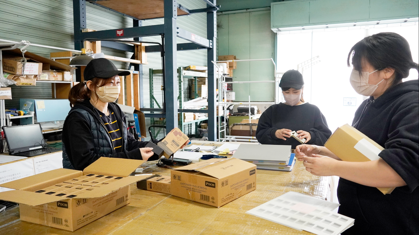 事務メンバーから挙がったのがこの声。物流センターのオフィスは2019年にリノベーション、中はメンバーみんなでDIYして作成しました。木の香りがするあたたかみあるオフィスがお気に入りなんだそう。オフィスの中には至る所に平安伸銅のアイテムが。