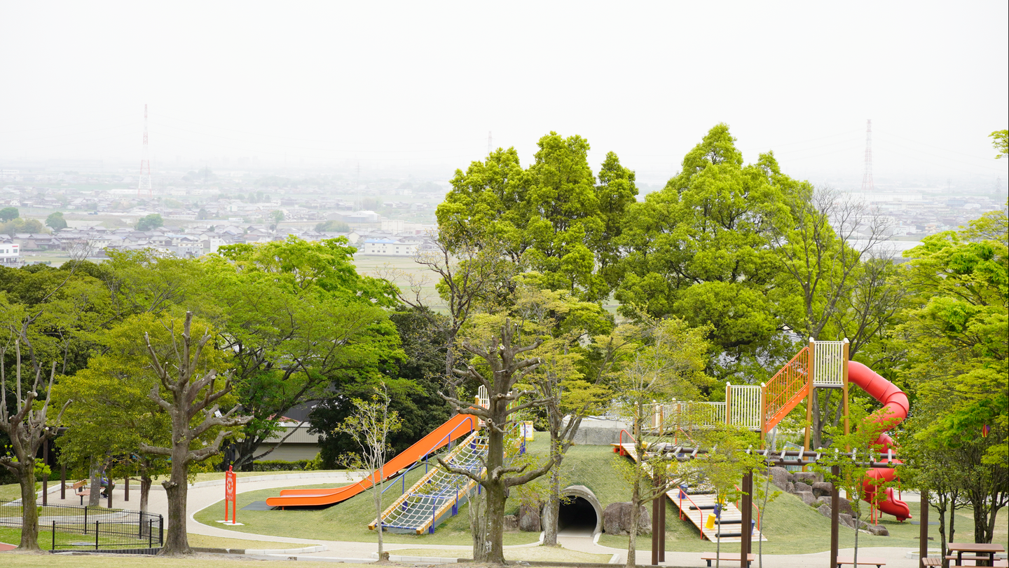 <物流センター近くの養老公園。広々とした見晴らしの良い広場にたくさんの遊具があり、子どもたちの笑い声が聞こえる>