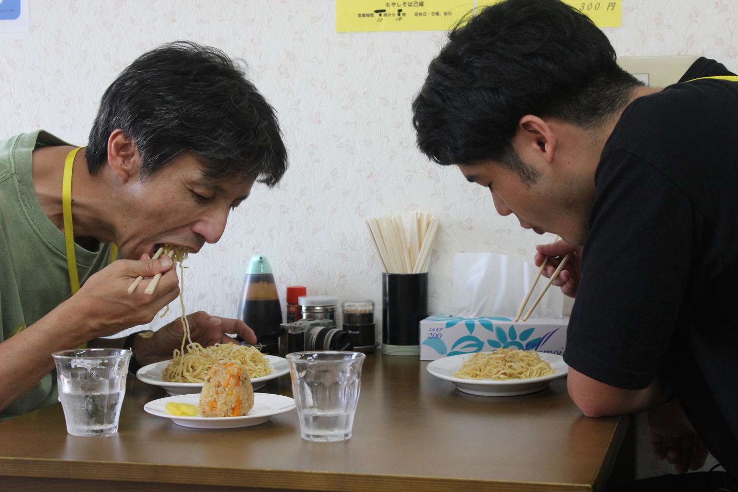 お昼ご飯は車で移動し、近くの「もやしそば己城」で、田川のソウルフードだというもやしそばを食べました。
