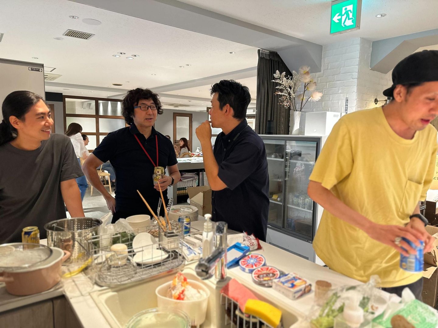キッチン周りでは仕事を越えた話で盛り上がっています