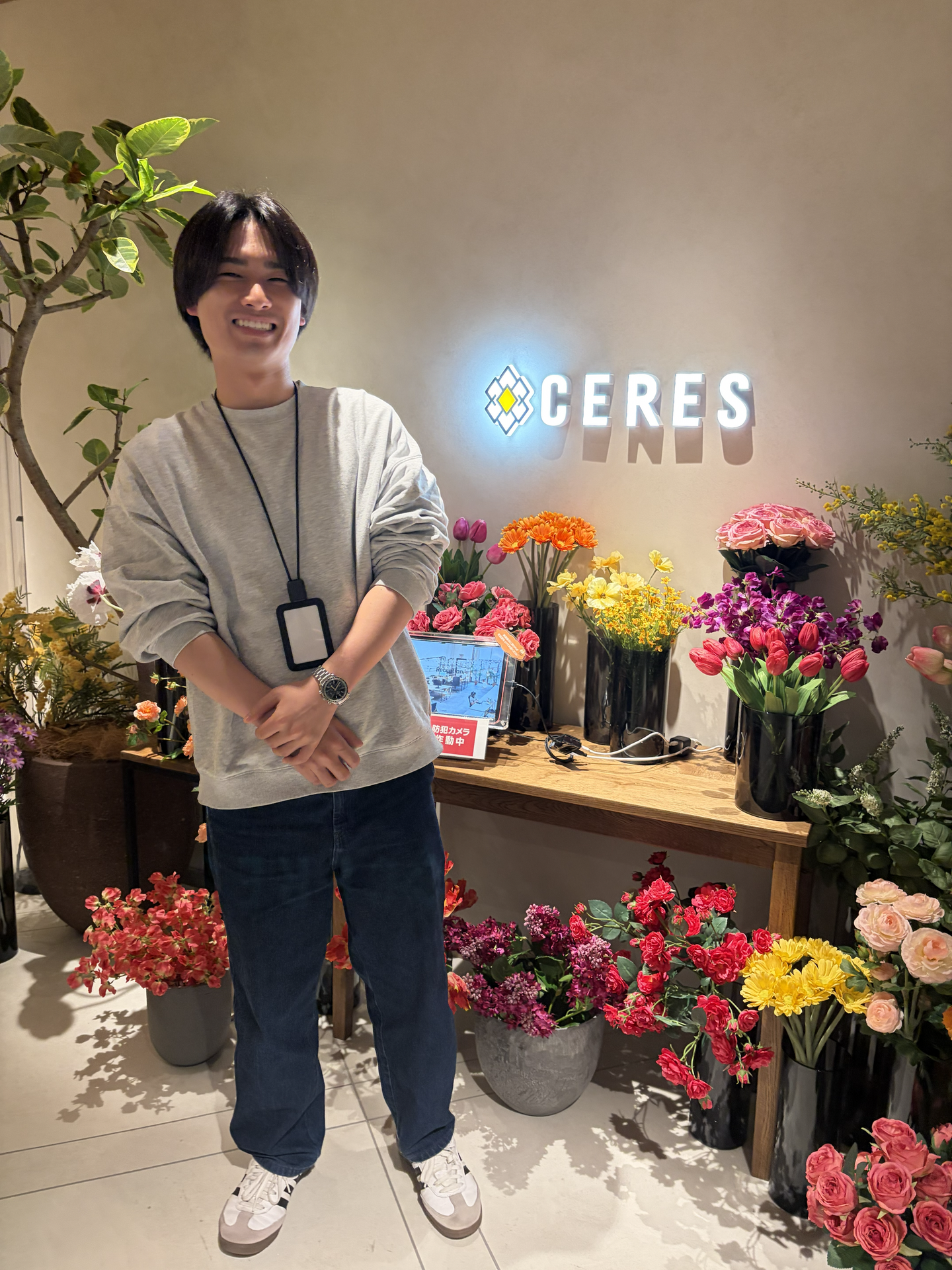 実は4月より新しくなった弊社ロゴ! エントランスもお花でいっぱいです。