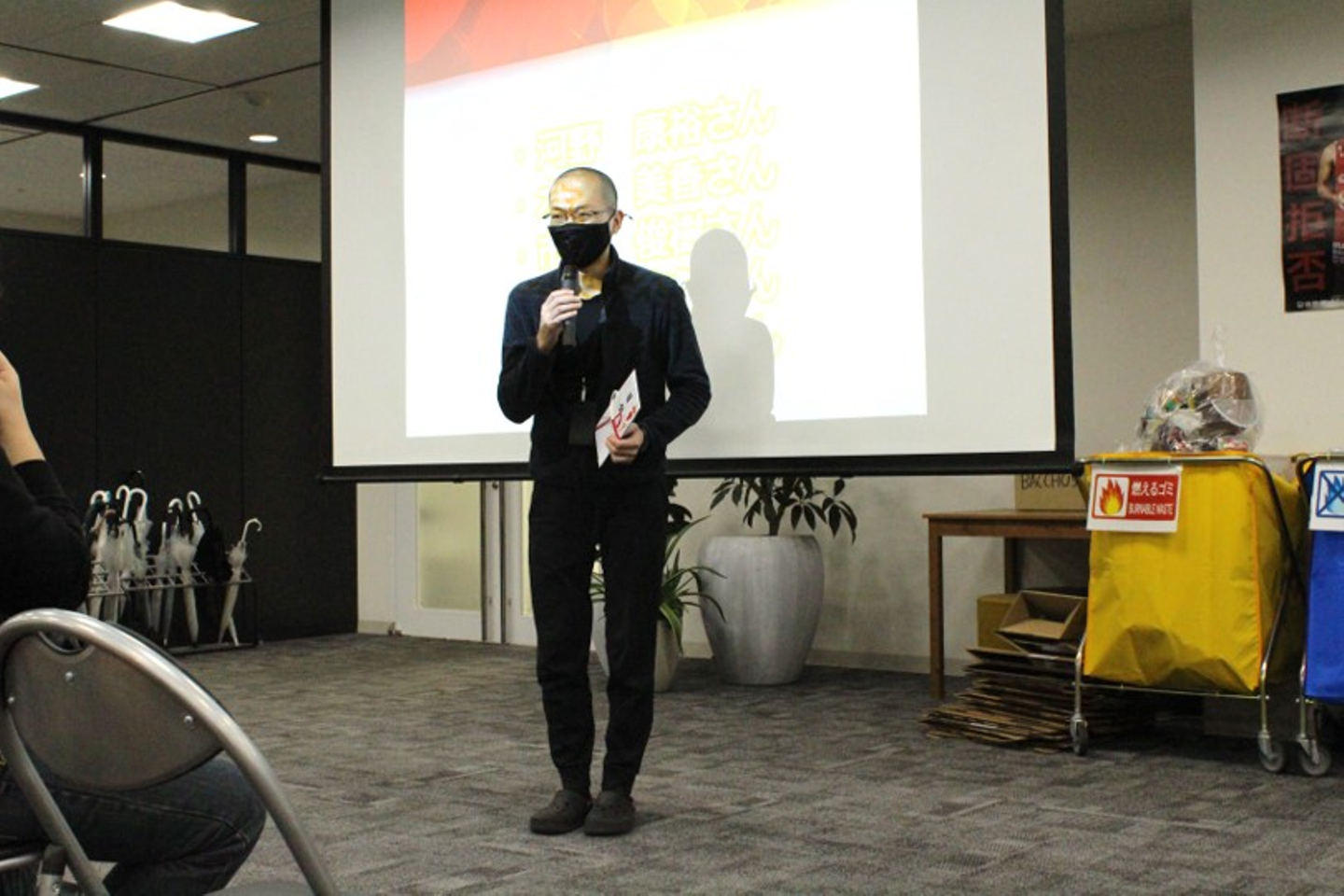 ~表彰は全社員の前で。代表してリーダーの河野さんが目録を受け取りました!~
