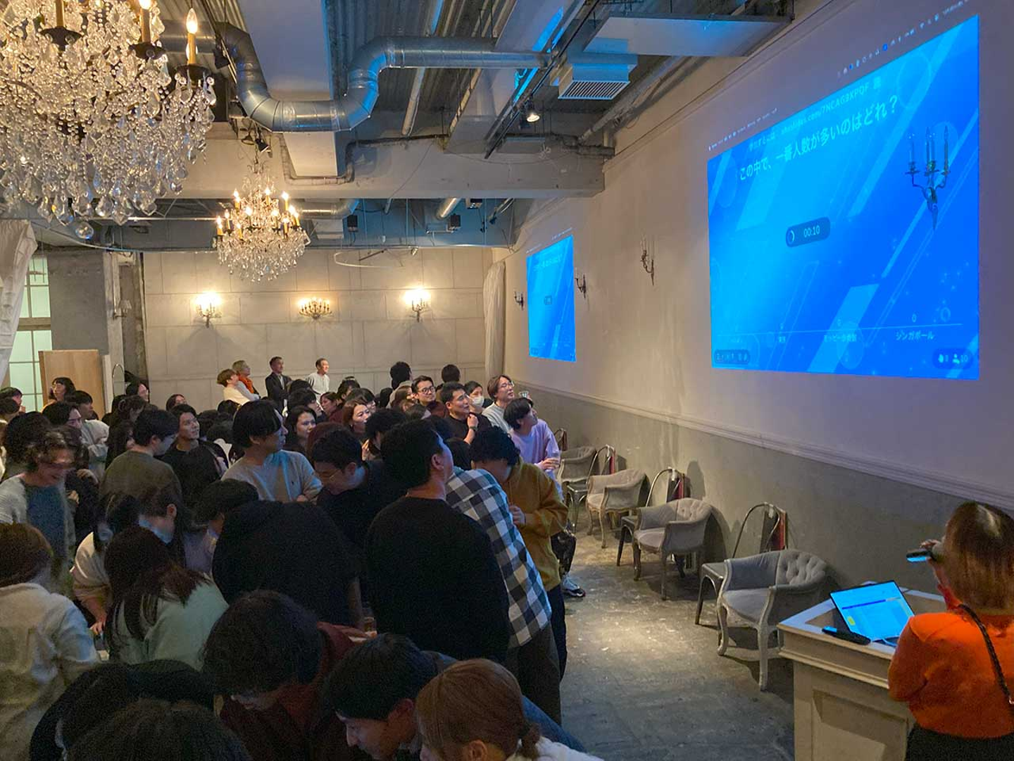解答時間がタイムアップして、会場中が静かにスクリーンに集中します。果たして、正解は???