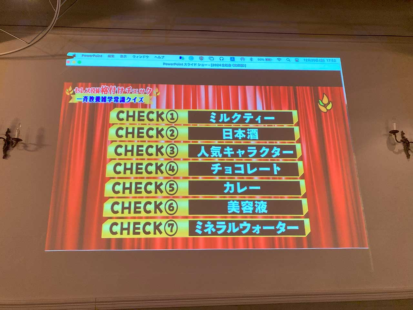 2024年下期は、D2C事業部の副部長をはじめとする同事業部のマネージャー陣が結集し、企画運営進行を担当。テレビ特番でもおなじみの本格的なクイズ大会に、従業員も大いに盛り上がりました!!
