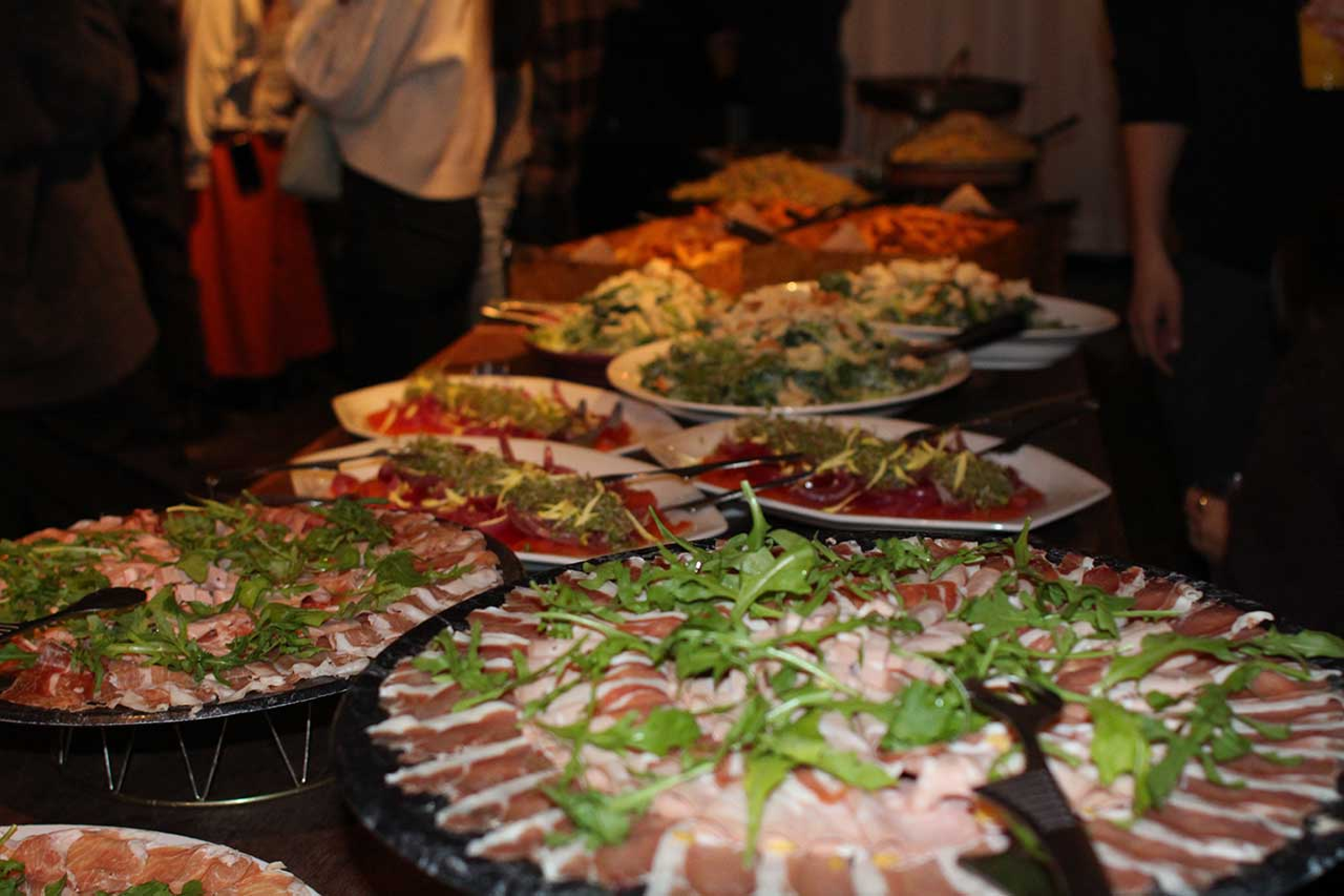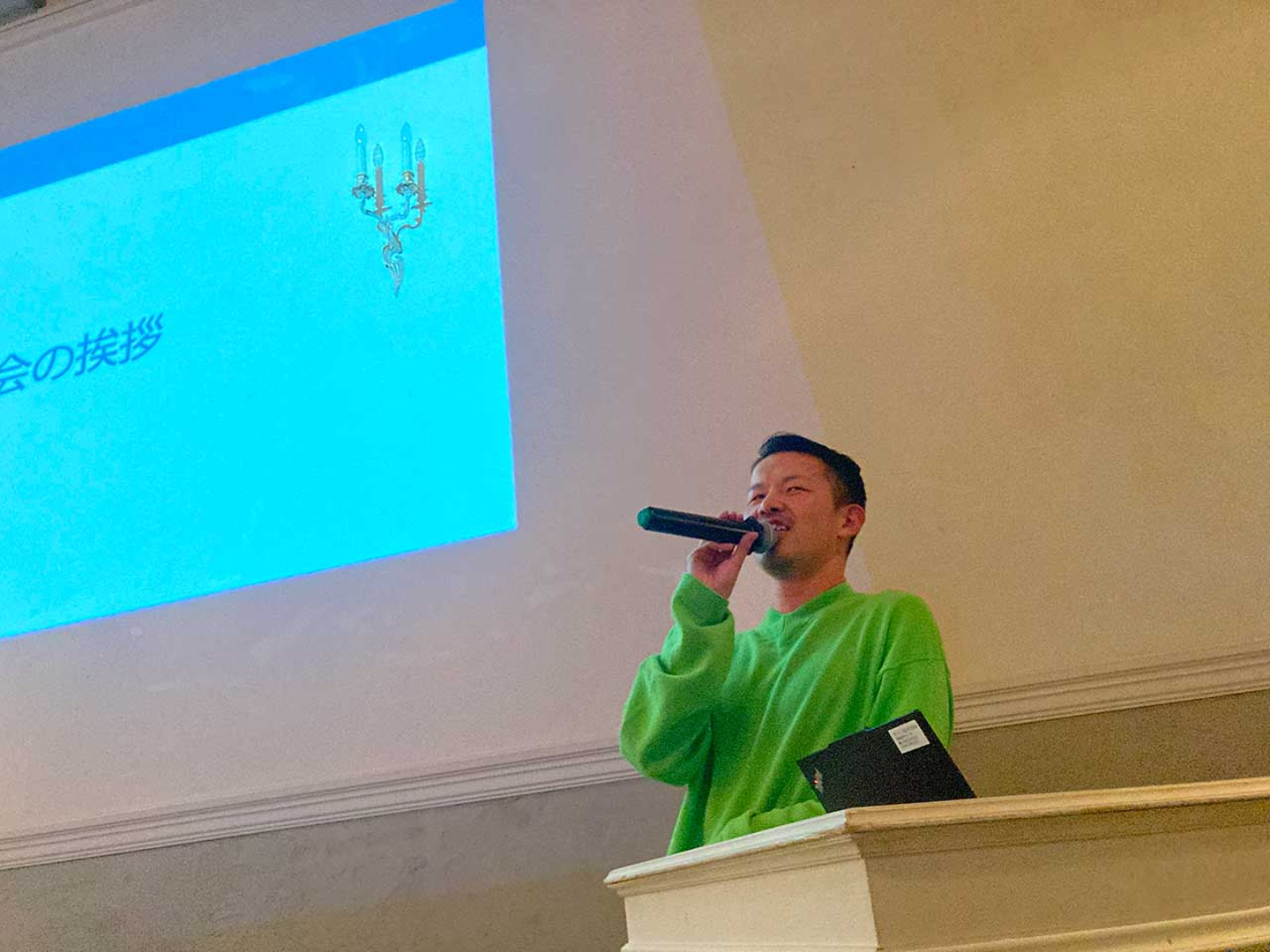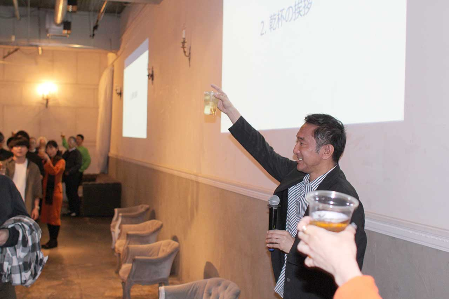 都木社長の乾杯の挨拶で全社会がスタート。「カンパーイ!」のかけ声とともにしばし歓談タイムです。