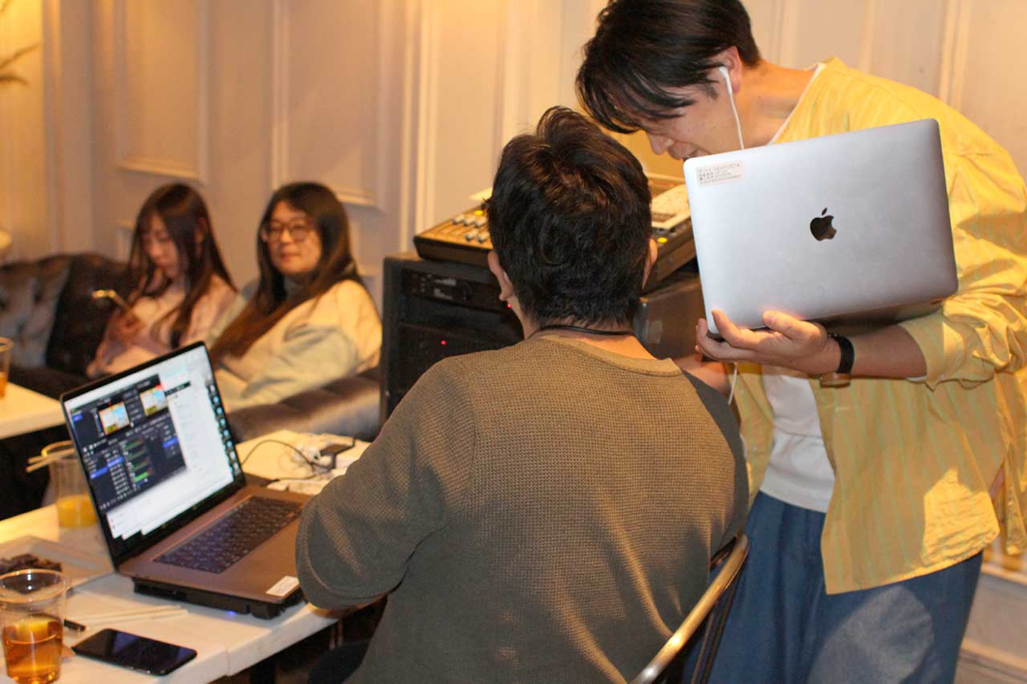舞台裏の会場後方サブ(副調整室)エリアでは、クリエイティブグループのマネージャーWさんとSさんがリアルタイムでクイズの出題や解答を集計。裏方として活躍しました!