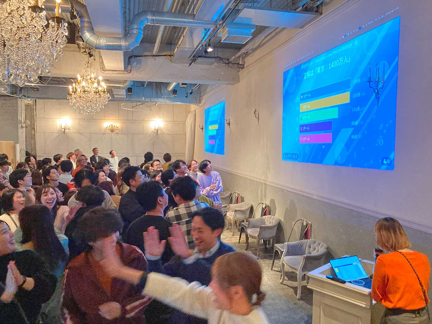 スクリーンに正解が映し出されると、“ドッ”と歓声があがる会場。一気に熱気が高まり、ハイタッチしながら歓喜に包まれる正解チームのみなさん!