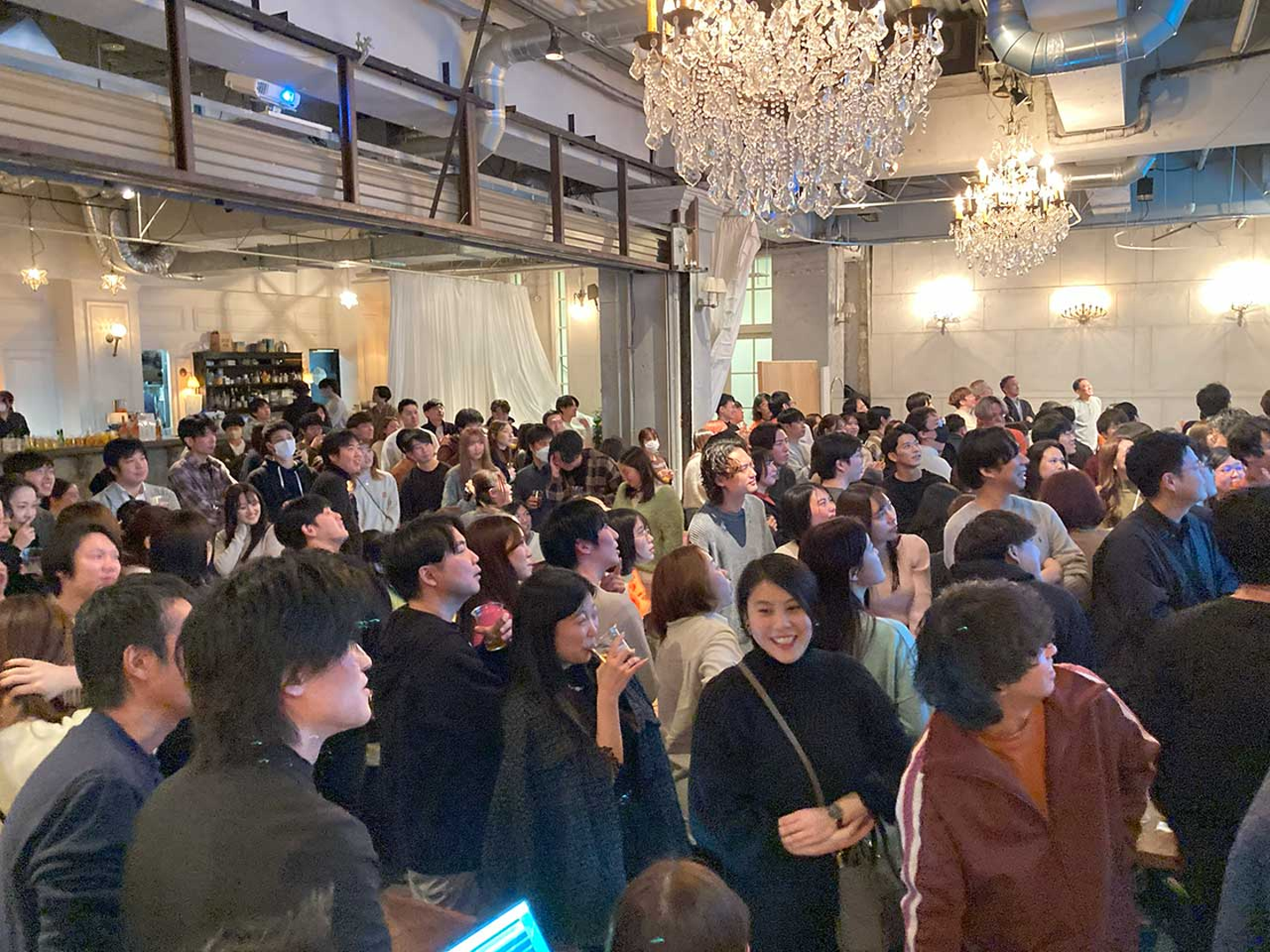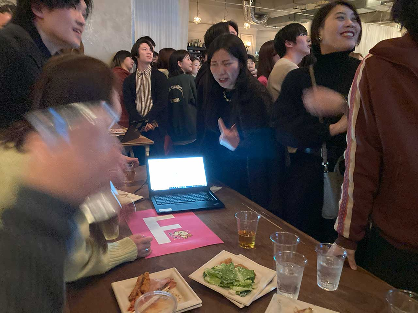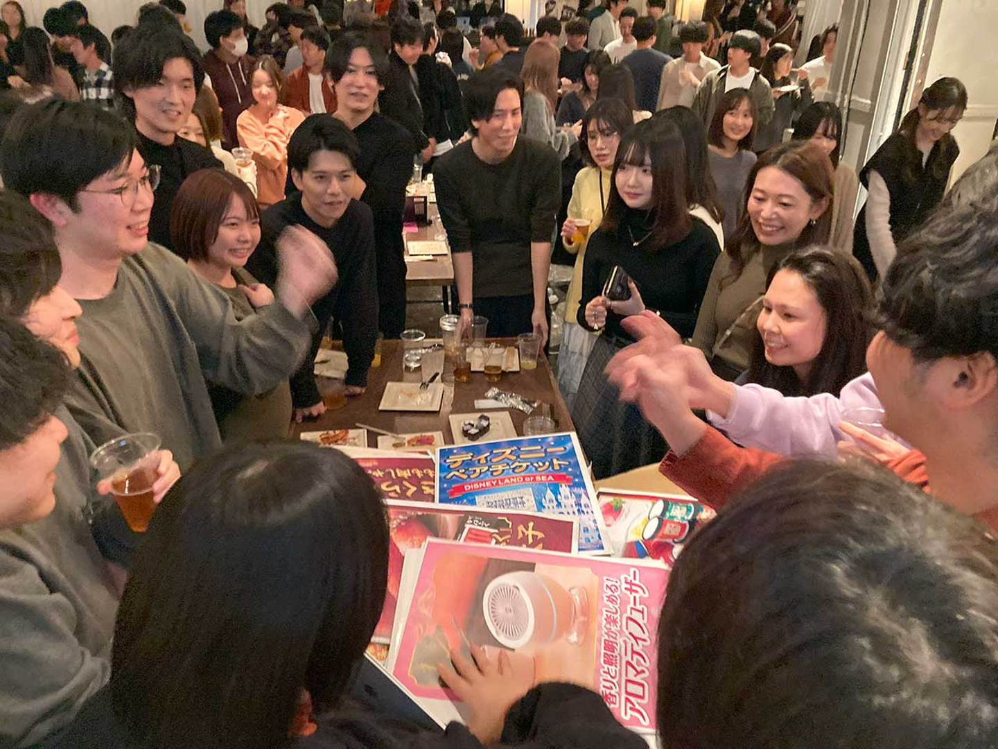 カメラの都合上、会場にいる従業員全員が入りきれず左右にはみ出してしまいましたが、、、楽しい様子が伝わると嬉しいです!