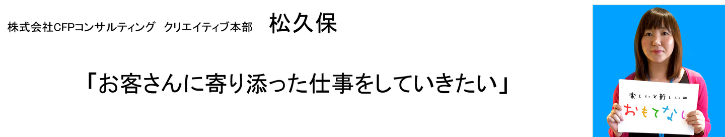 コンサルの方だけではない、CFPコンサルティング。制作を行っている方にもと思い、クリエイティブ制作事業の松久保さんにもお話を聞きしました。