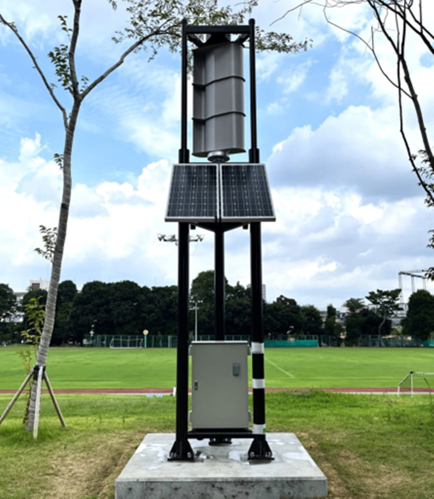 発電性能と耐久性を両立し、通常時は街路灯に、災害時には蓄電した電力で照明として活用。