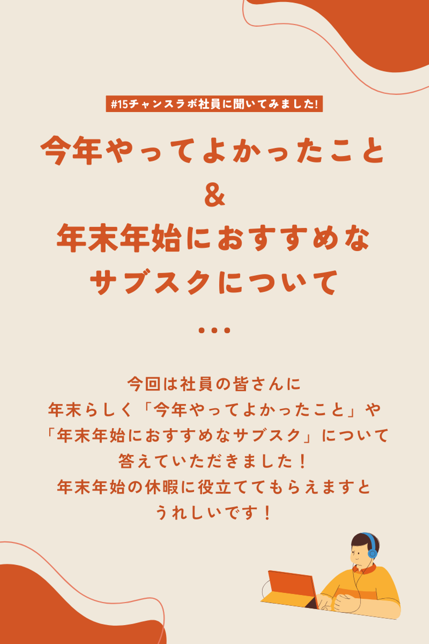 今回は「今年やってよかったこと&年末年始におすすめなサブスクについて」がテーマの社内報を掲載させていただきます。
