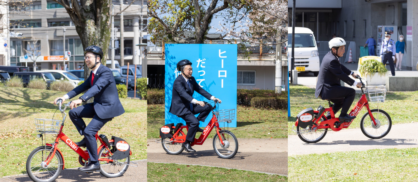 出発式の準備中も「もうチャリチャリ使えるんですか?」と声を掛けていただいたり、さっそくご利用いただいている姿を見るなど、久留米市のみなさんにもたくさん愛されるサービスになるんだろうなと嬉しくなりました♪