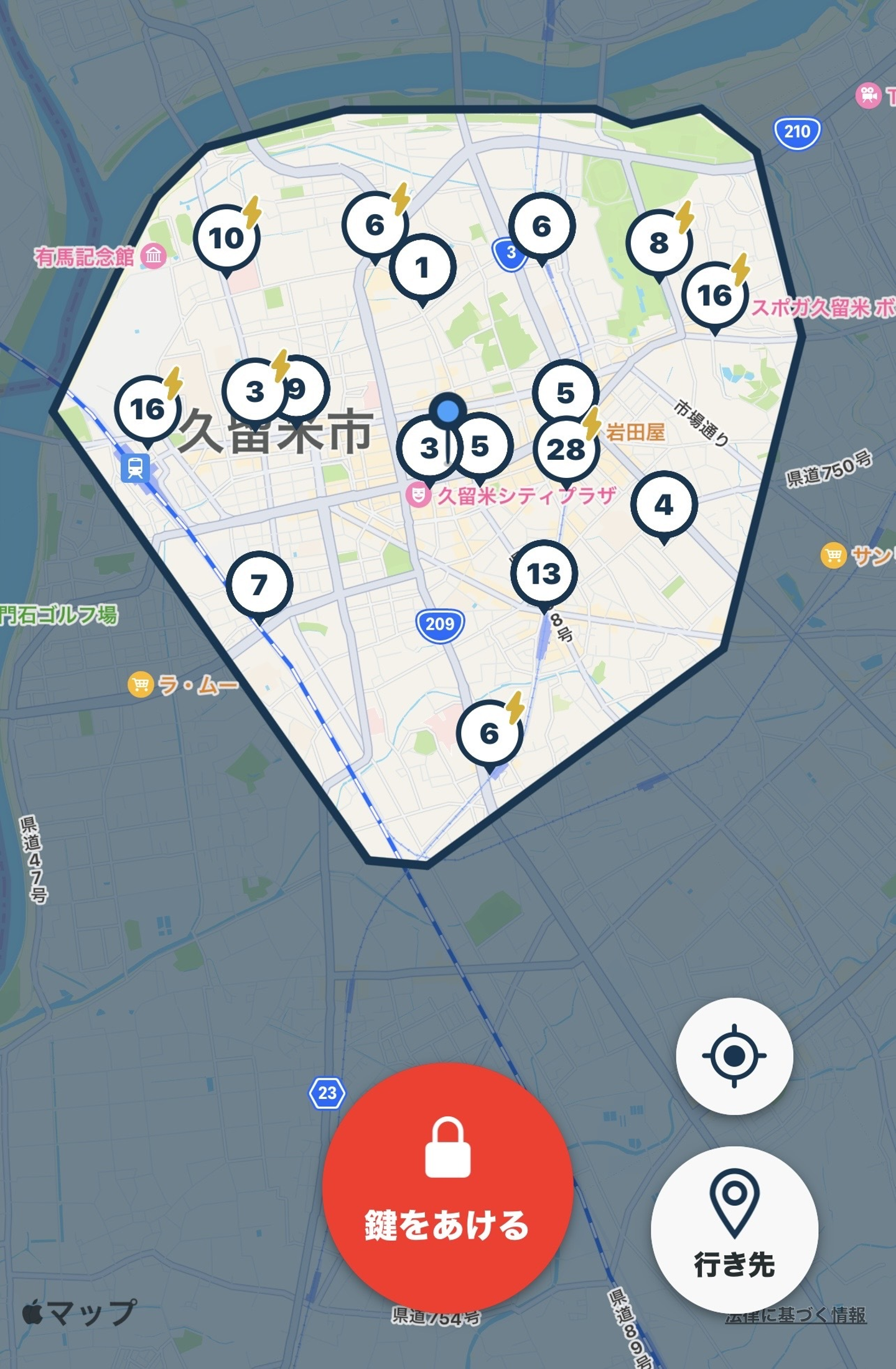 正午になり、チャリチャリアプリにも久留米エリアが表示されました・・・!!!