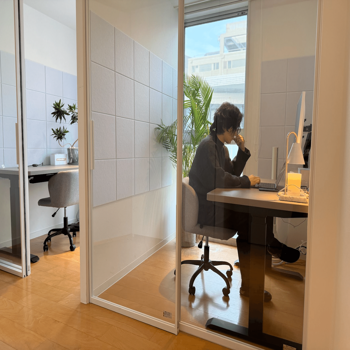 オフィスの個別ブース。右側のブースを愛用する藤田。通称・藤田部屋。