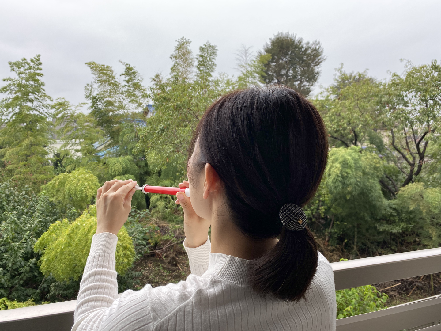 ベランダで気持ちよさそうに魔笛を奏でていた。