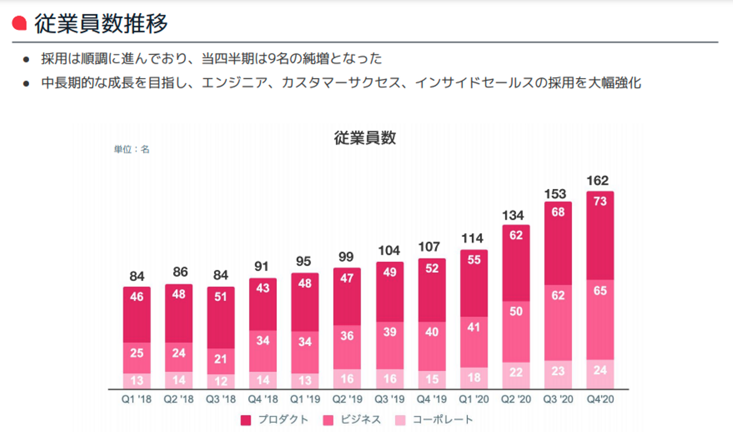 2021年3月末には176名まで増えており、ビジネス本部でもセールスやカスタマーサクセスを始め、採用にも非常に力を入れてます。