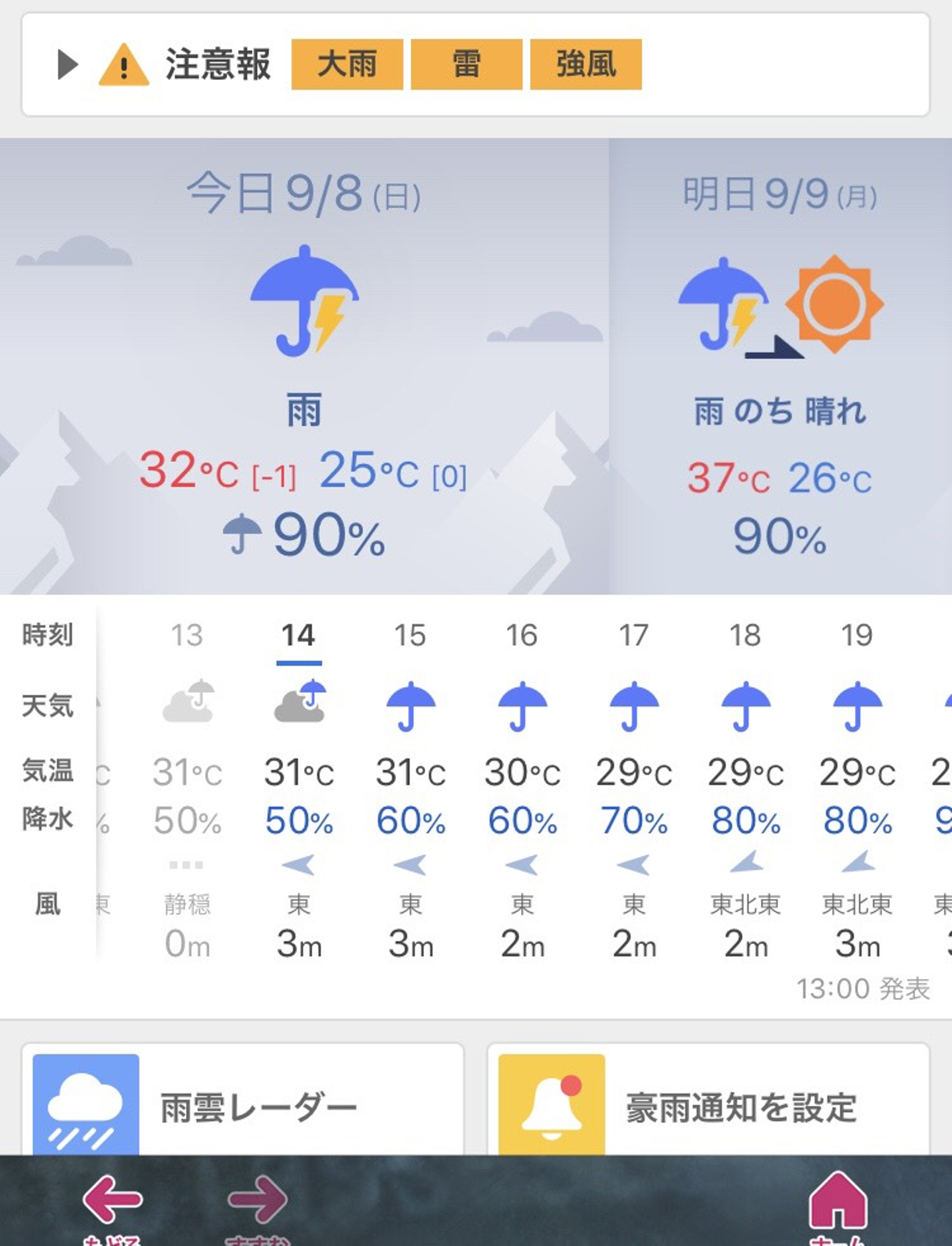 前日 天気予報的にはお昼は問題ないかもやけど50%、、、夕方は確実に雨風やばいやろ予報!