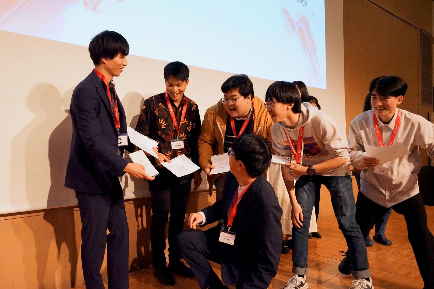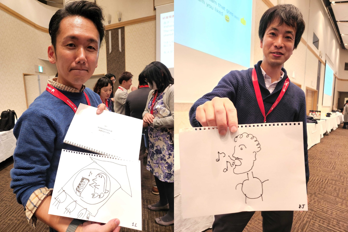 テレストレーションは、ただの伝言ゲームではありません!チームの先頭者にテーマが与えられ、制限時間内にそれを絵で表現し、次の人が解読して言葉にし、それを交互に繰り返す、という少し変わった伝言ゲーム。皆さん、これは盛り上がりました!この日一番生き生きした笑顔が見れた企画だったように思います。