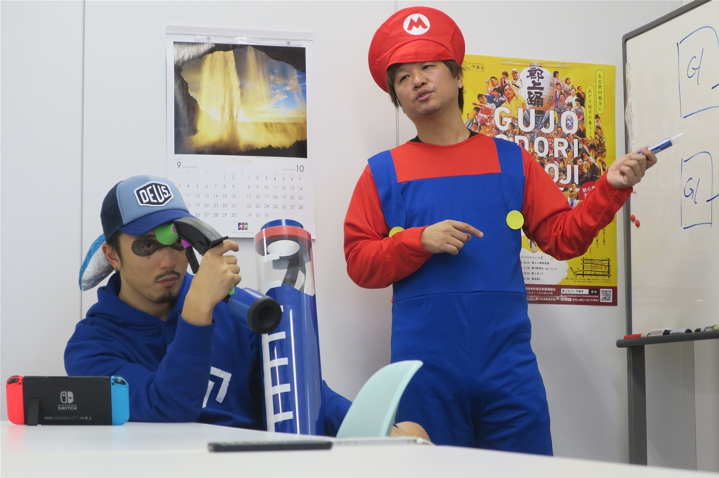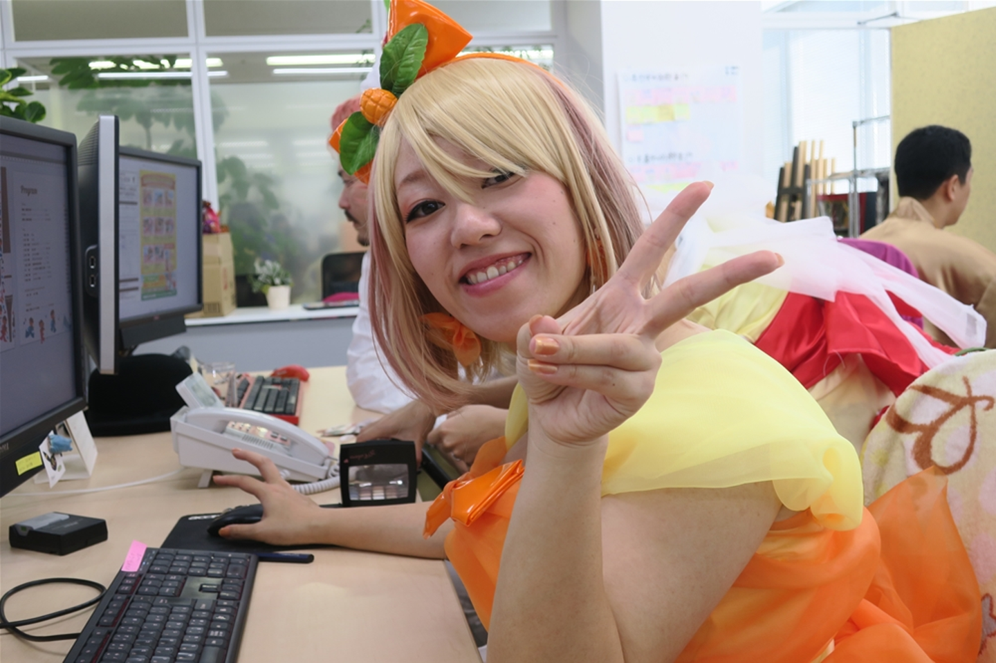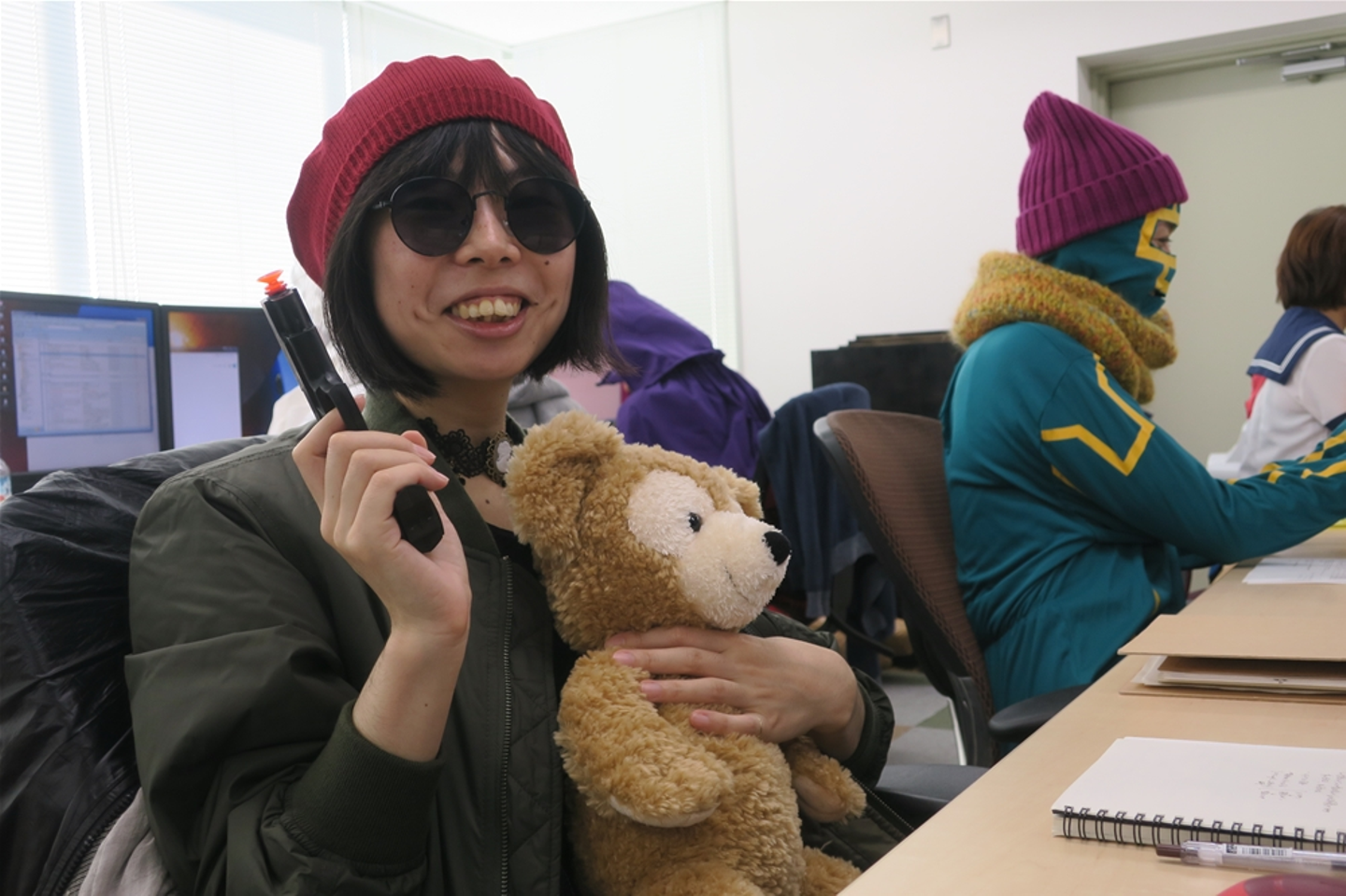 自らもコスプレして来てくれた会社見学の学生さん。その積極性が素晴らしい!