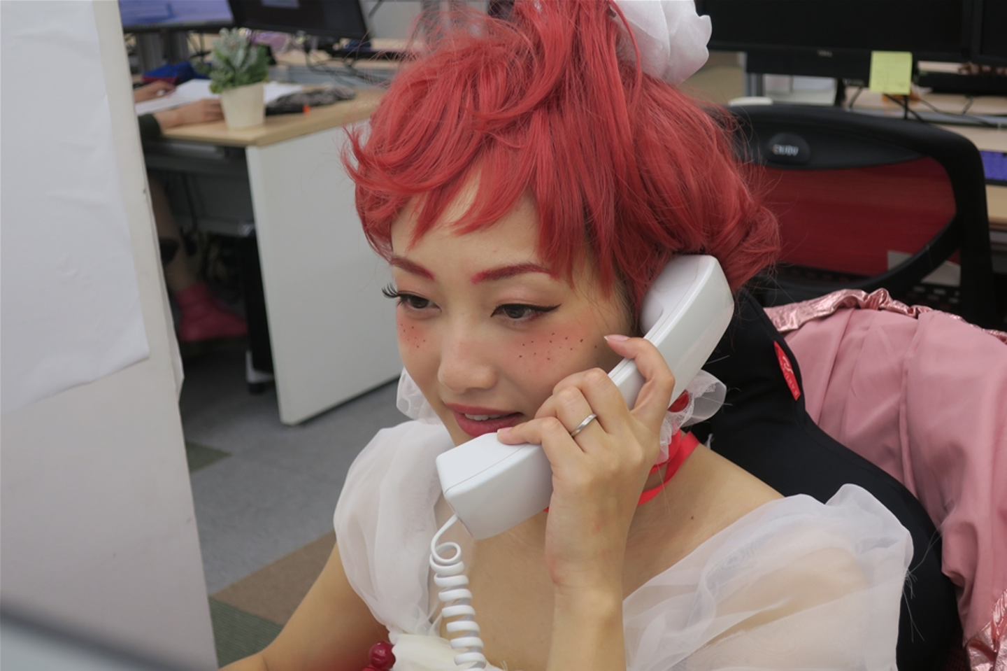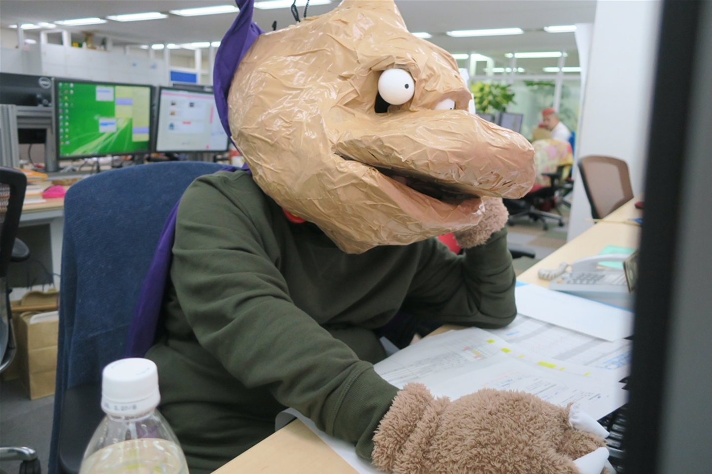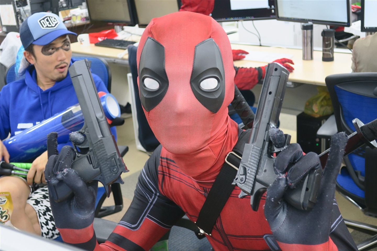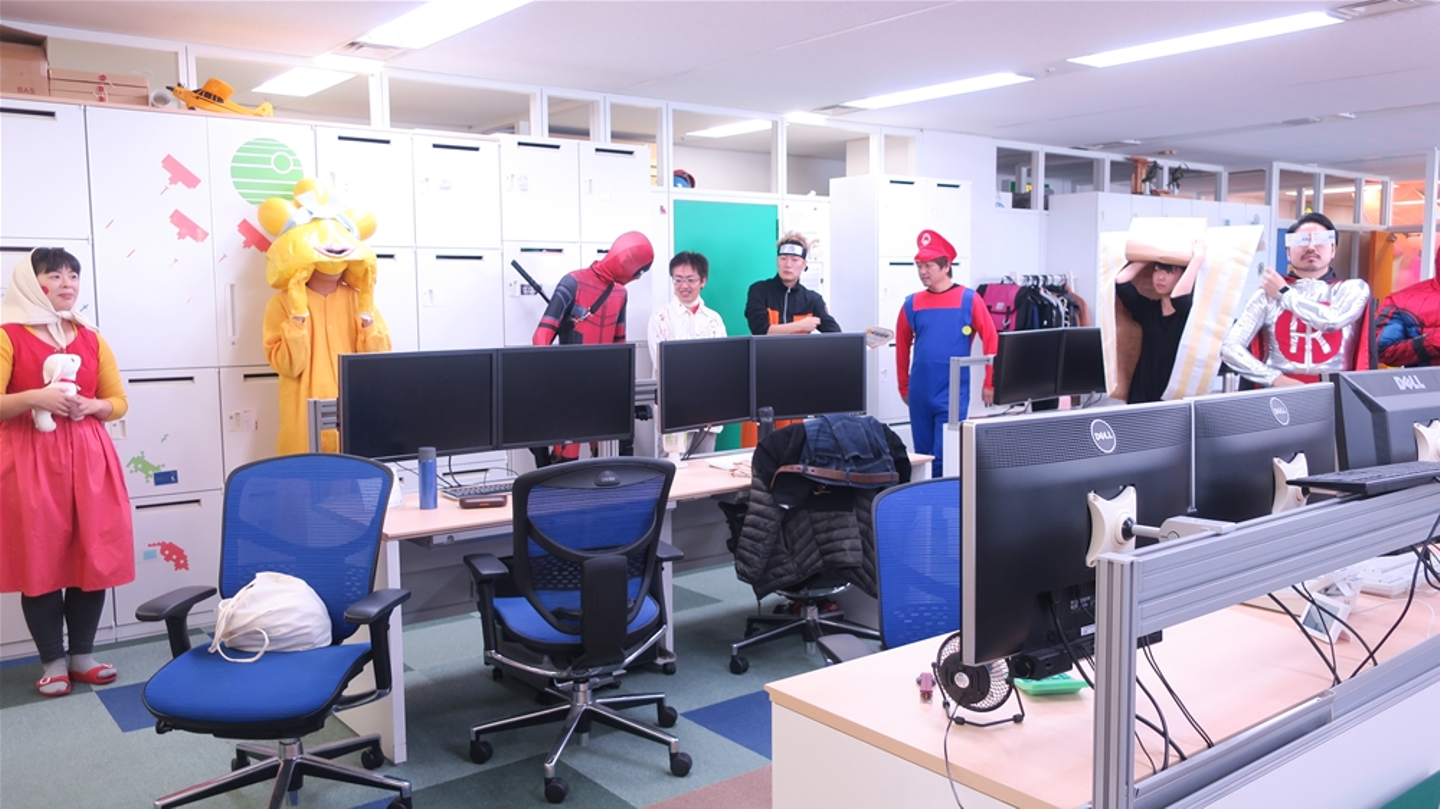 自らもコスプレして来てくれた会社見学の学生さん。その積極性が素晴らしい!